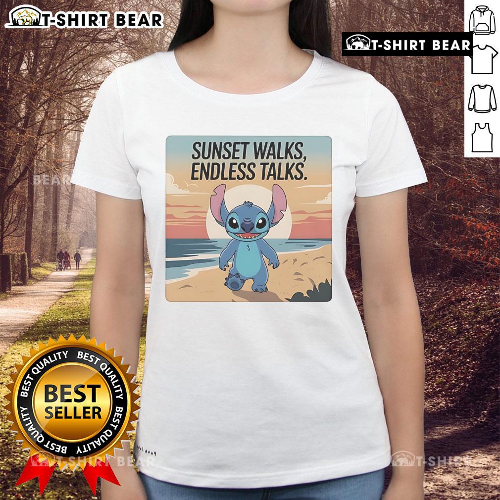 Pretty Stitch In The Beach Sunset Walks Endless Talks T-Shirt