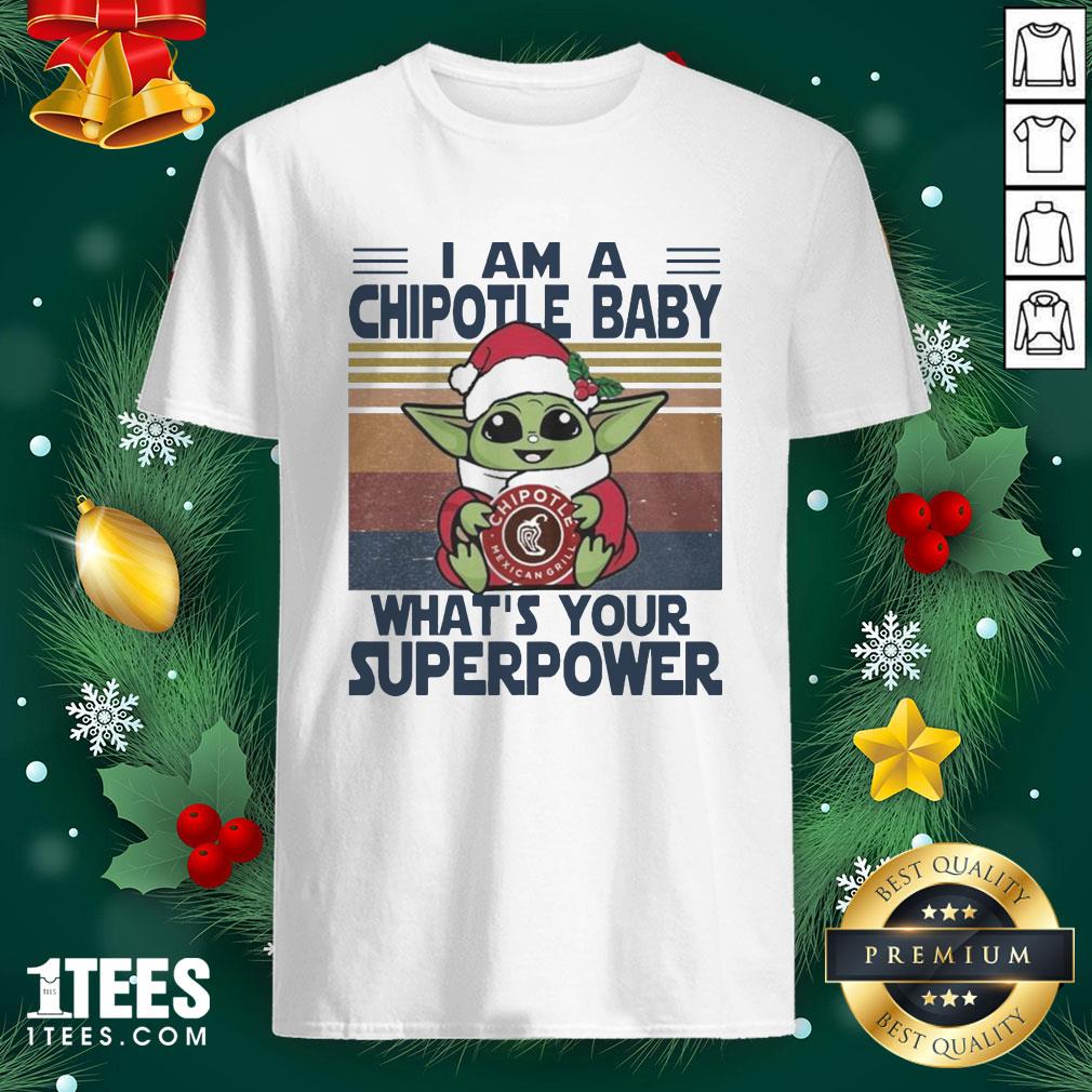 Pro Baby Yoda Santa Hug Chipotle Mexican Grill What’s Your Superpower Vintage Shirt