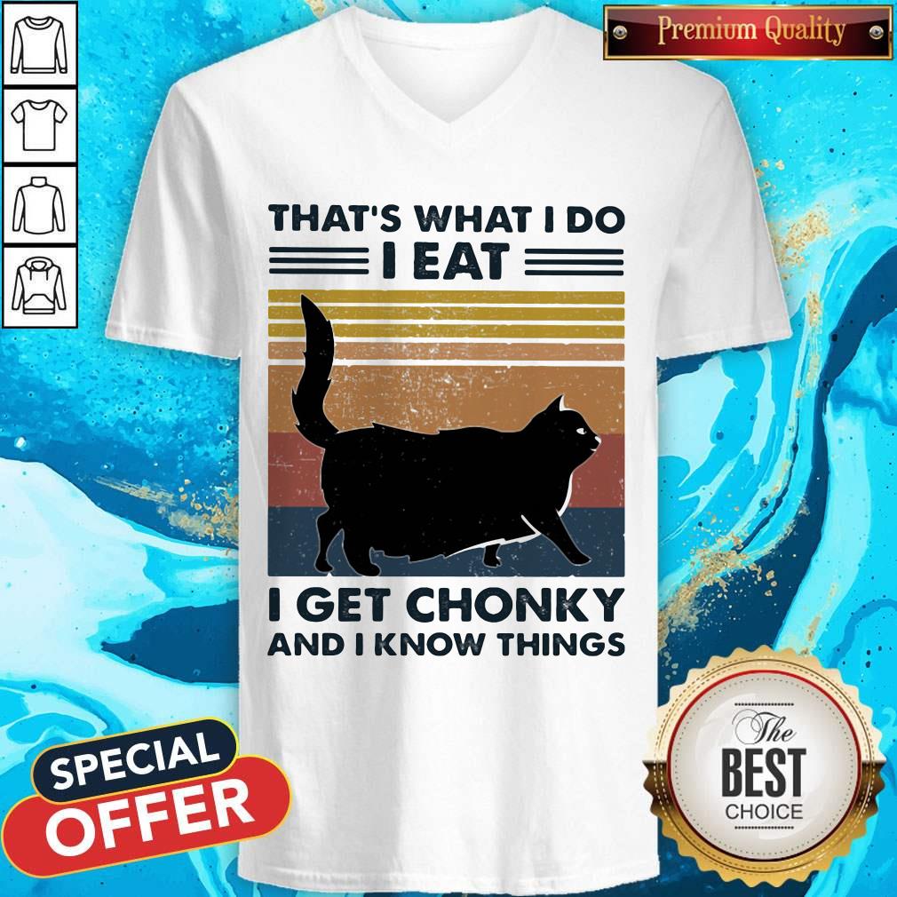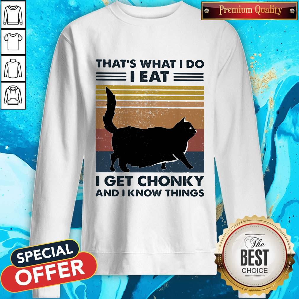 Pro Black Cat That’S What I Do I Eat I Get Chonky And I Know Things Vintage Retro Shirt