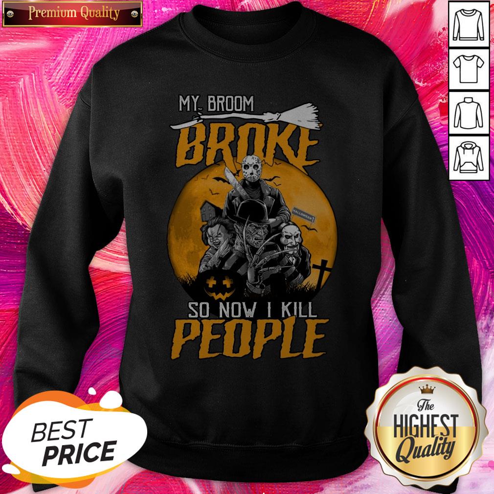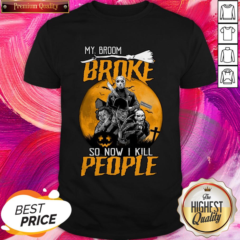 Pro Horror Characters My Broom Broke So Now I Kill People Halloween Shirt