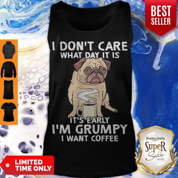 Pug I Don’t Care What Day It Is It’s Early I’m Grumpy I Want Coffee Shirt