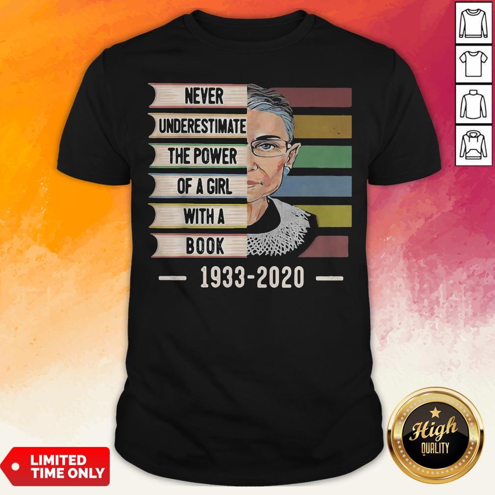 Ruth Bader Ginsburg Never Underestimate The Power Of A Girl With A Book 1933-2020 Vintage Retro Shirt