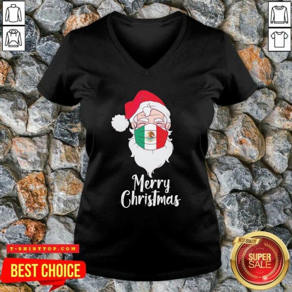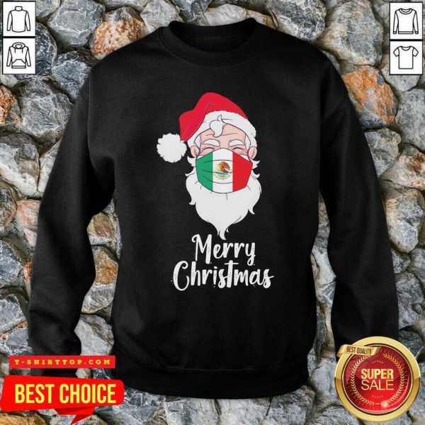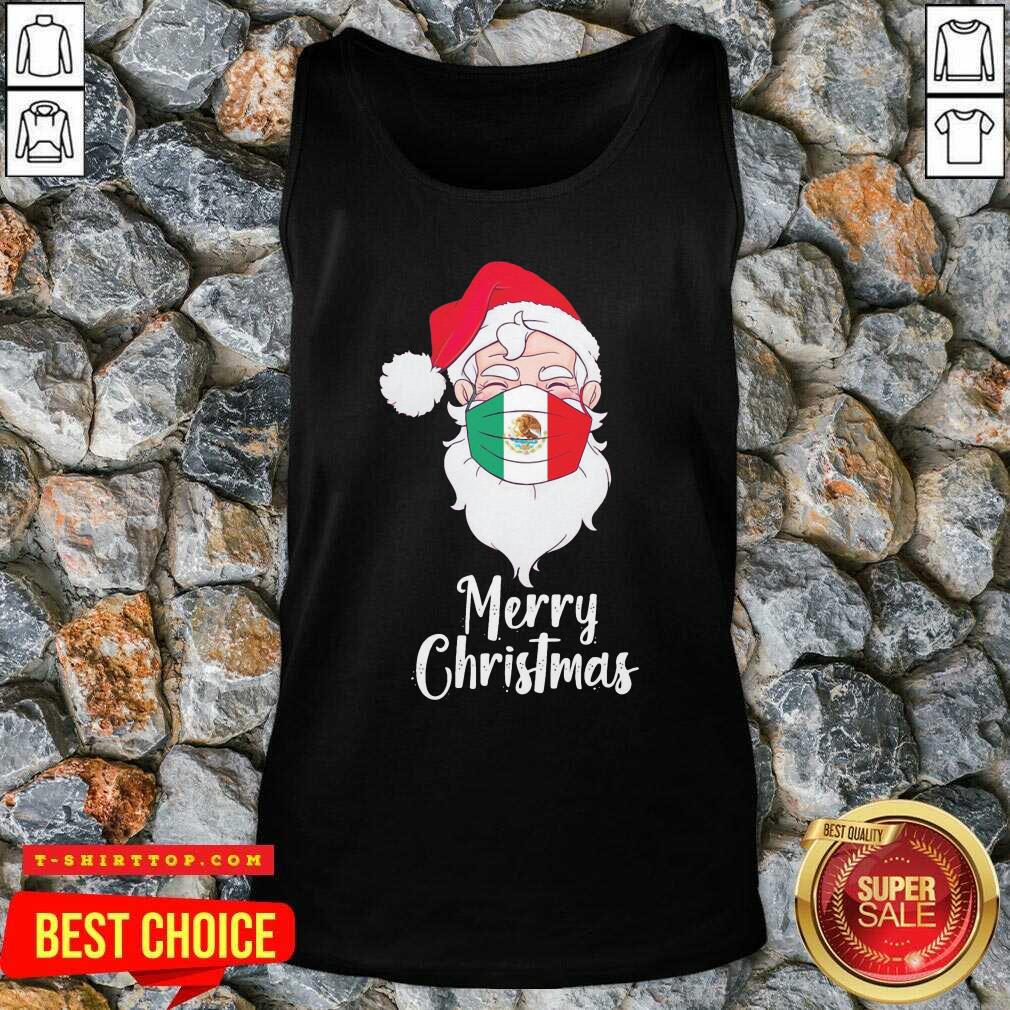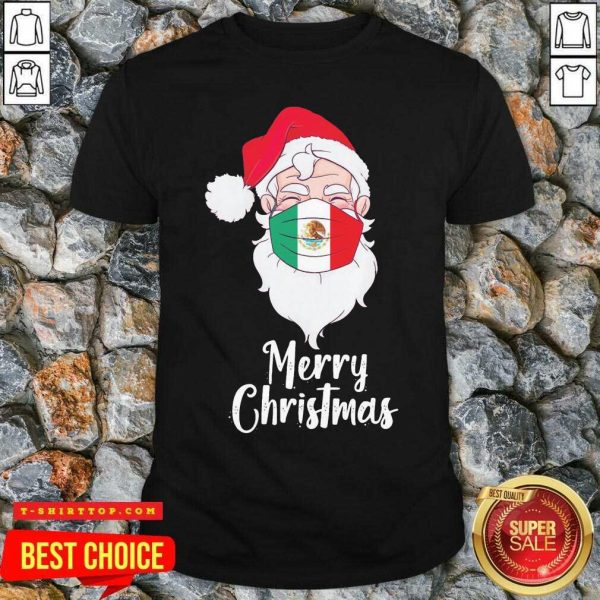 Santa Claus Face Mask Bandera De Mexico Flag Merry Christmas Shirt