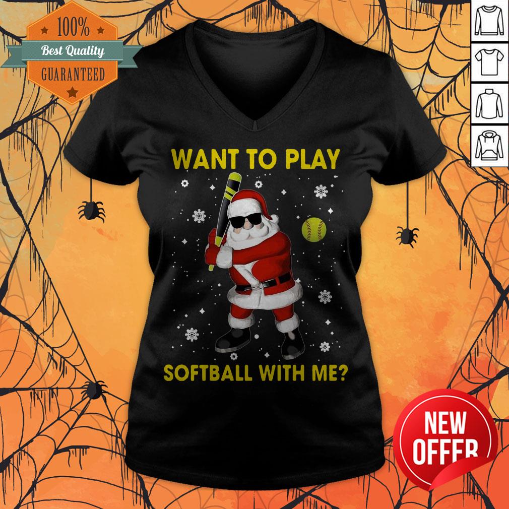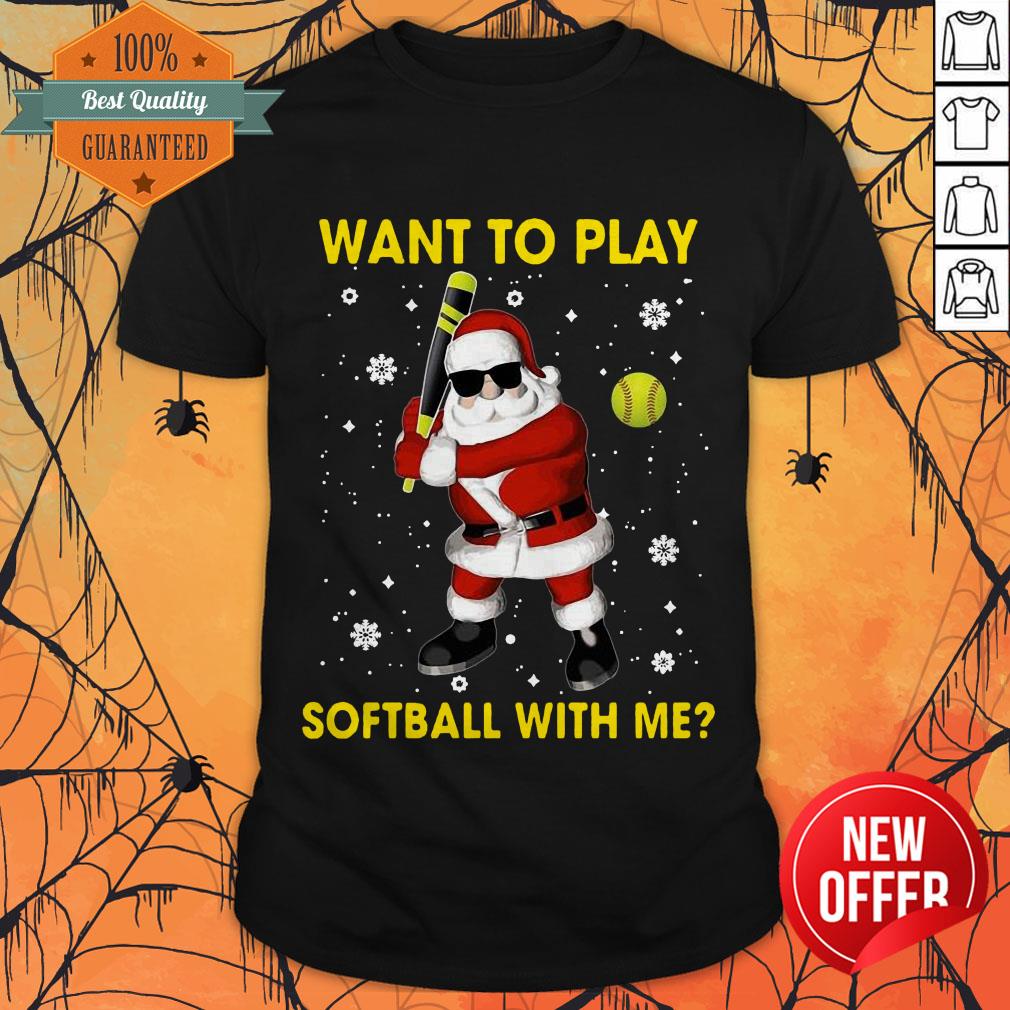 Santa Claus Want To Play Softball With Me Christmas Shirt