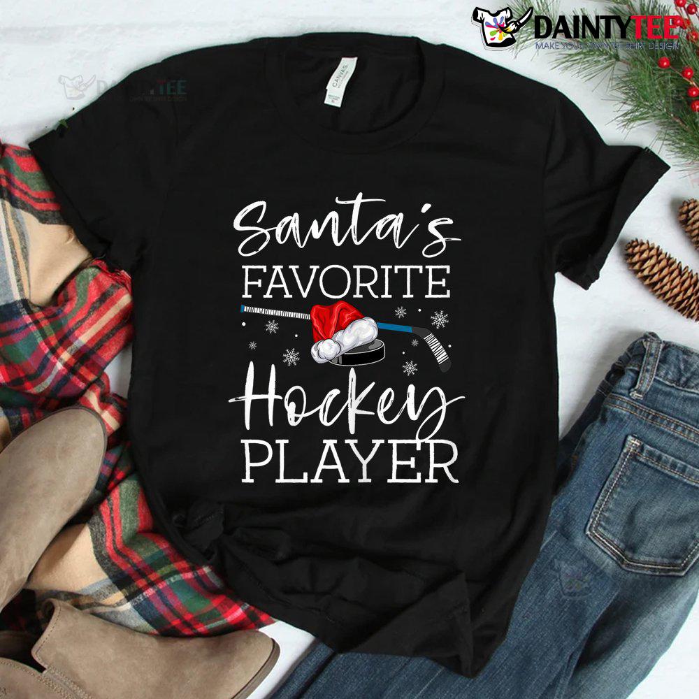 Santa’s Favorite Hockey Player Funny Pajama Christmas Shirt