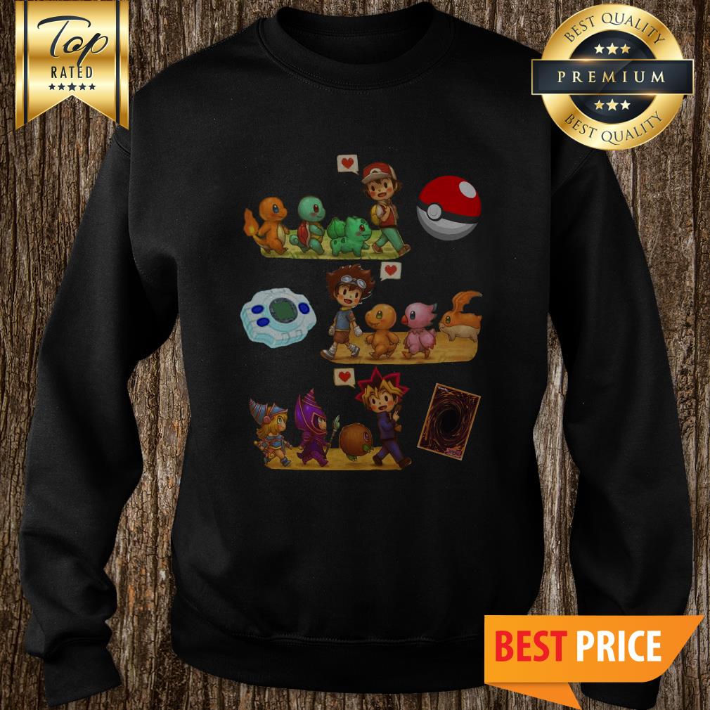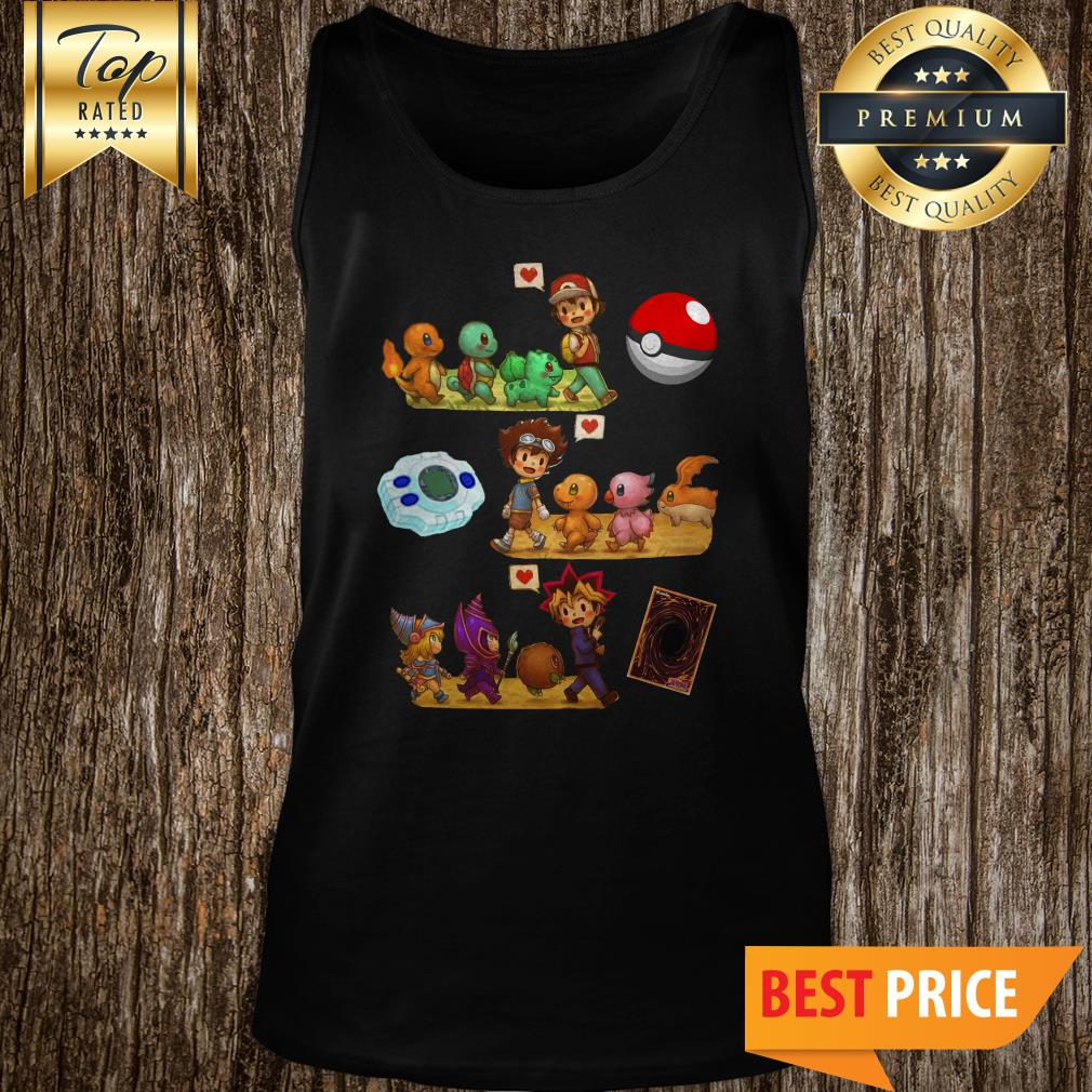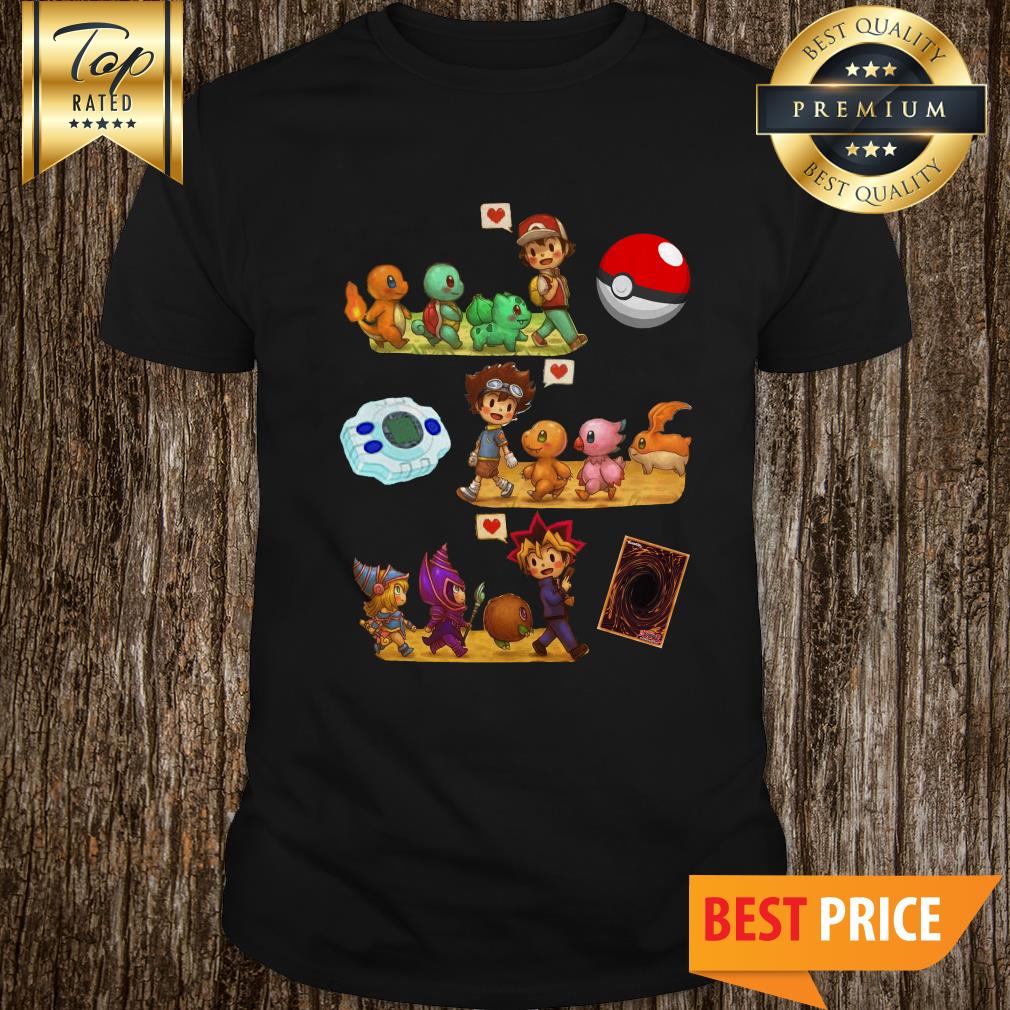 Satoshi Pokemon Yagami Taichi Digimon Yugi Muto Yu-Gi-Oh Friends Shirt