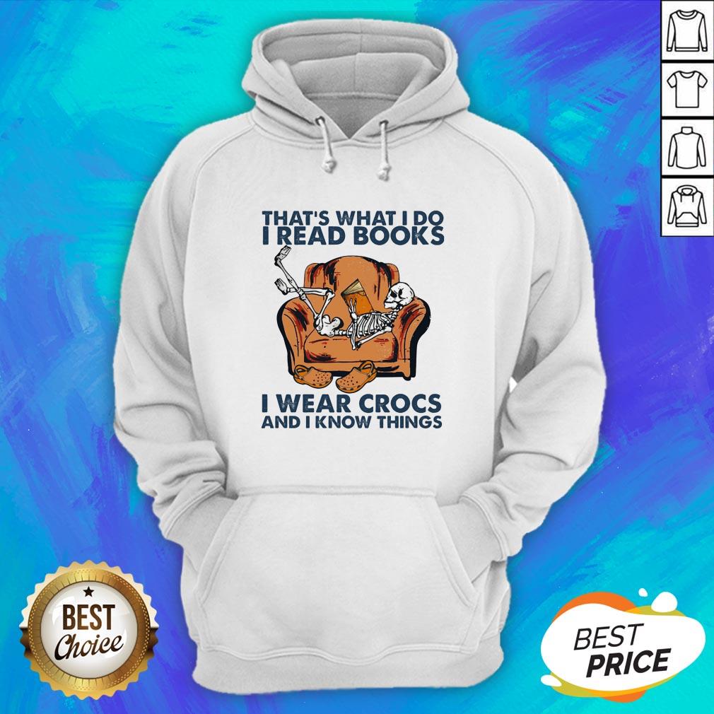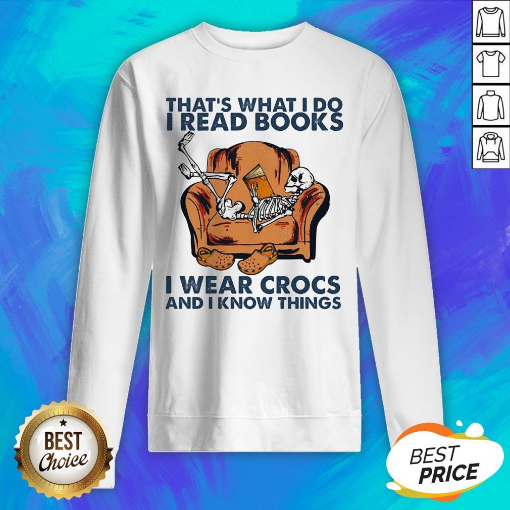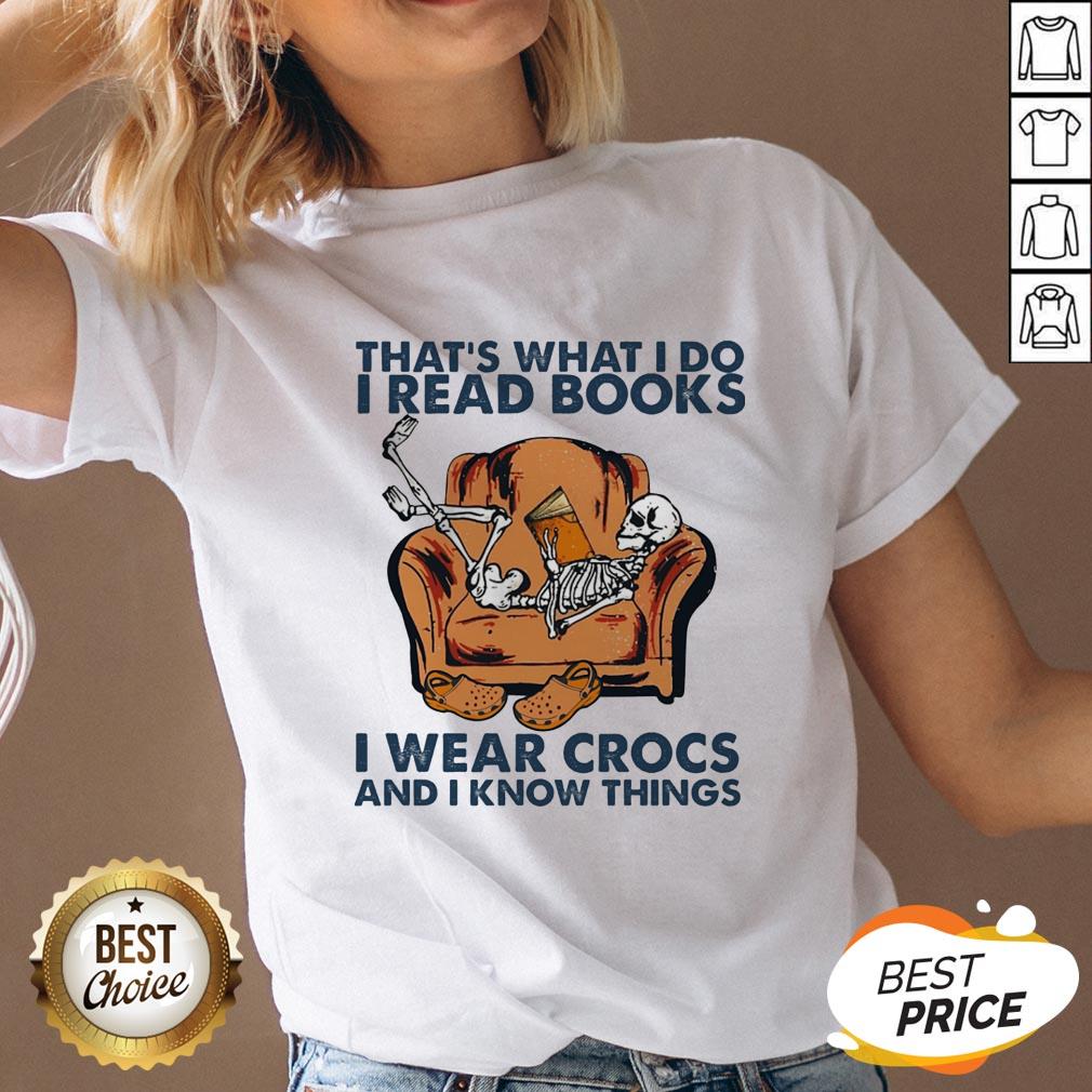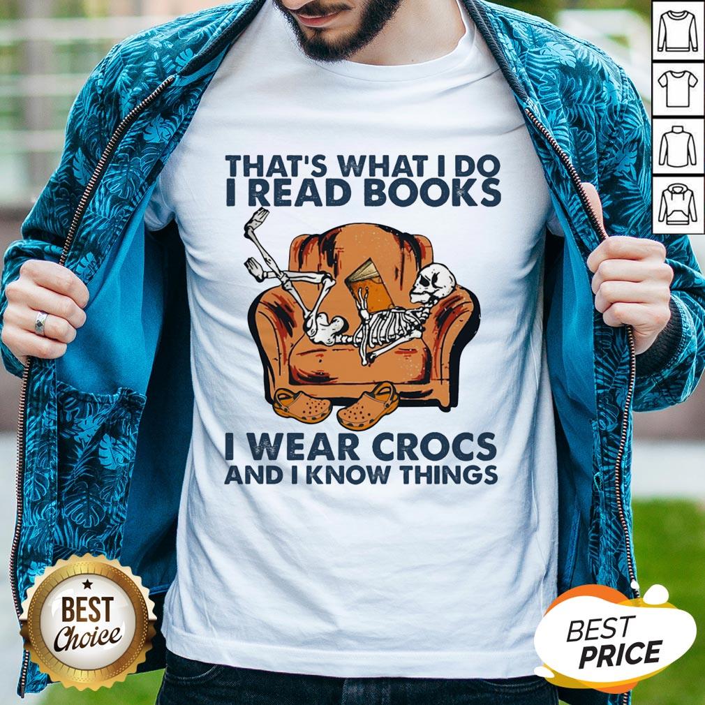 Skeleton That’s What I Do I Read Books I Wear Crocs And I Know Things Shirt