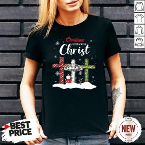 Snowman Cross Christmas Begins With Christ Shirt