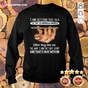 So Sloth I Am Getting Too Old To Try To Impress People Either They Like Me The Way I Am Or They Don’t And That’s Okay With Me Shirt