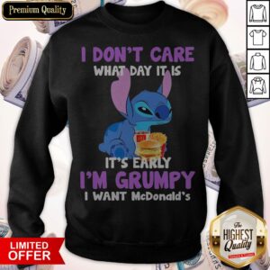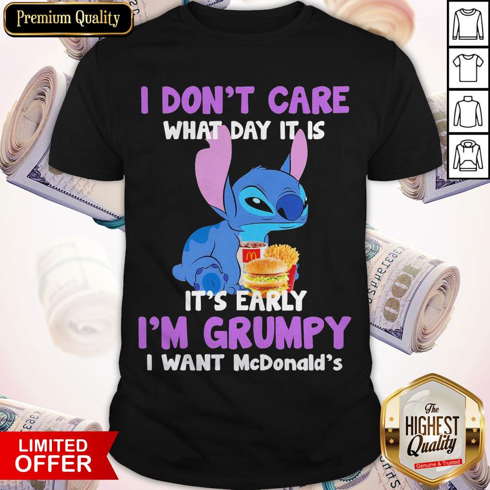 Stitch I Don’t Care What Day It Is It’s Early I’M Grumpy I Want Mcdonald’s Shirt