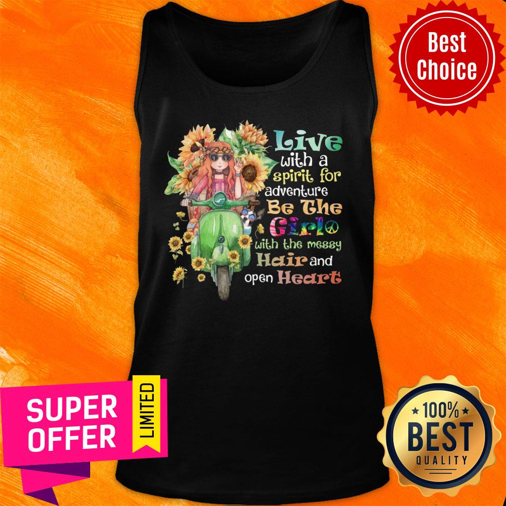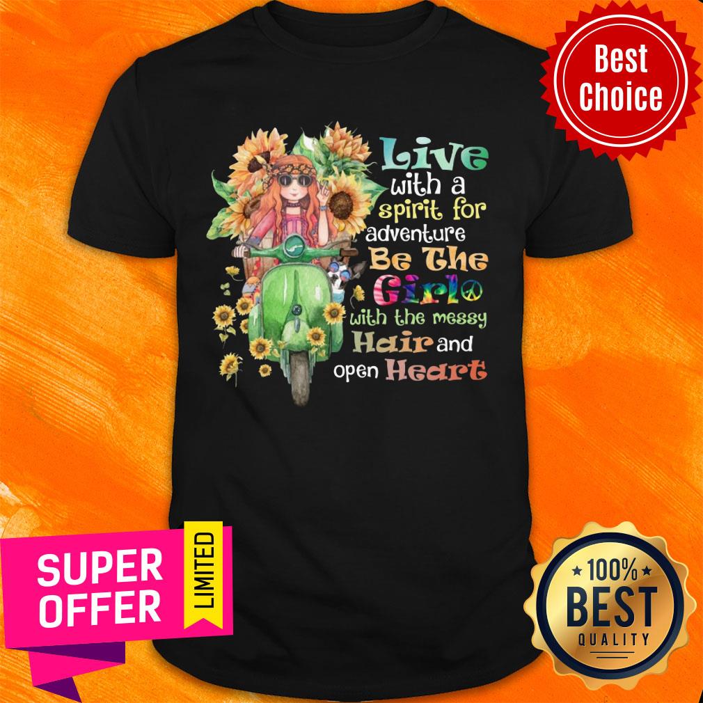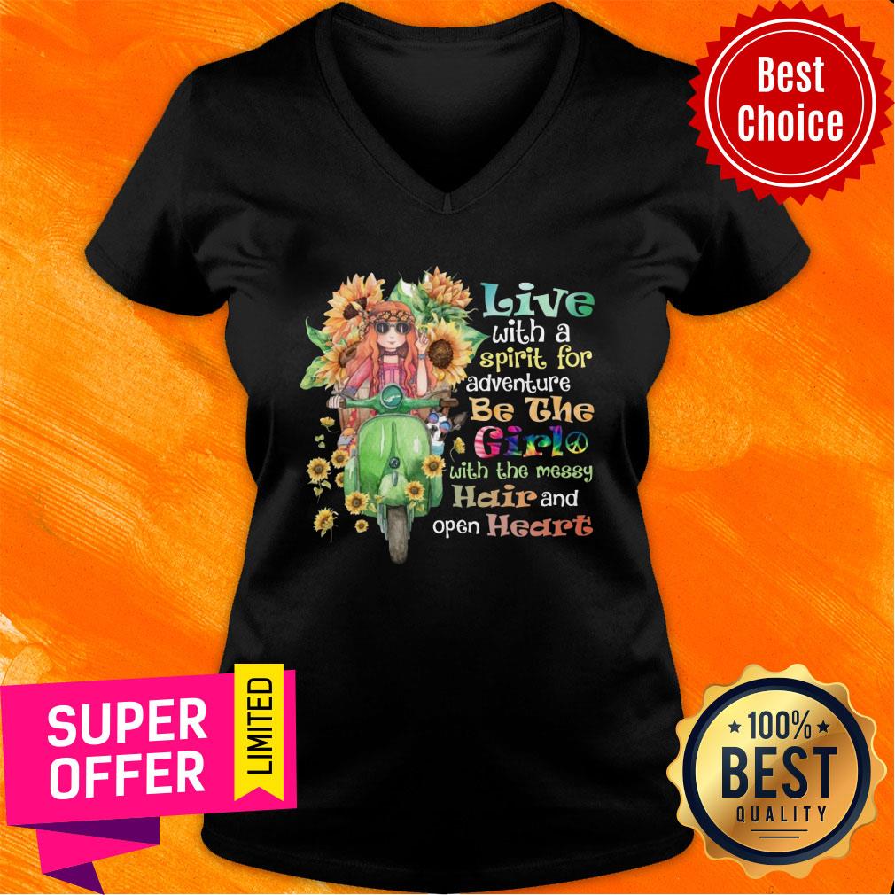 Sunflower Live With Spirit For Adventure Girl With Messy Hair Open Heart Shirt