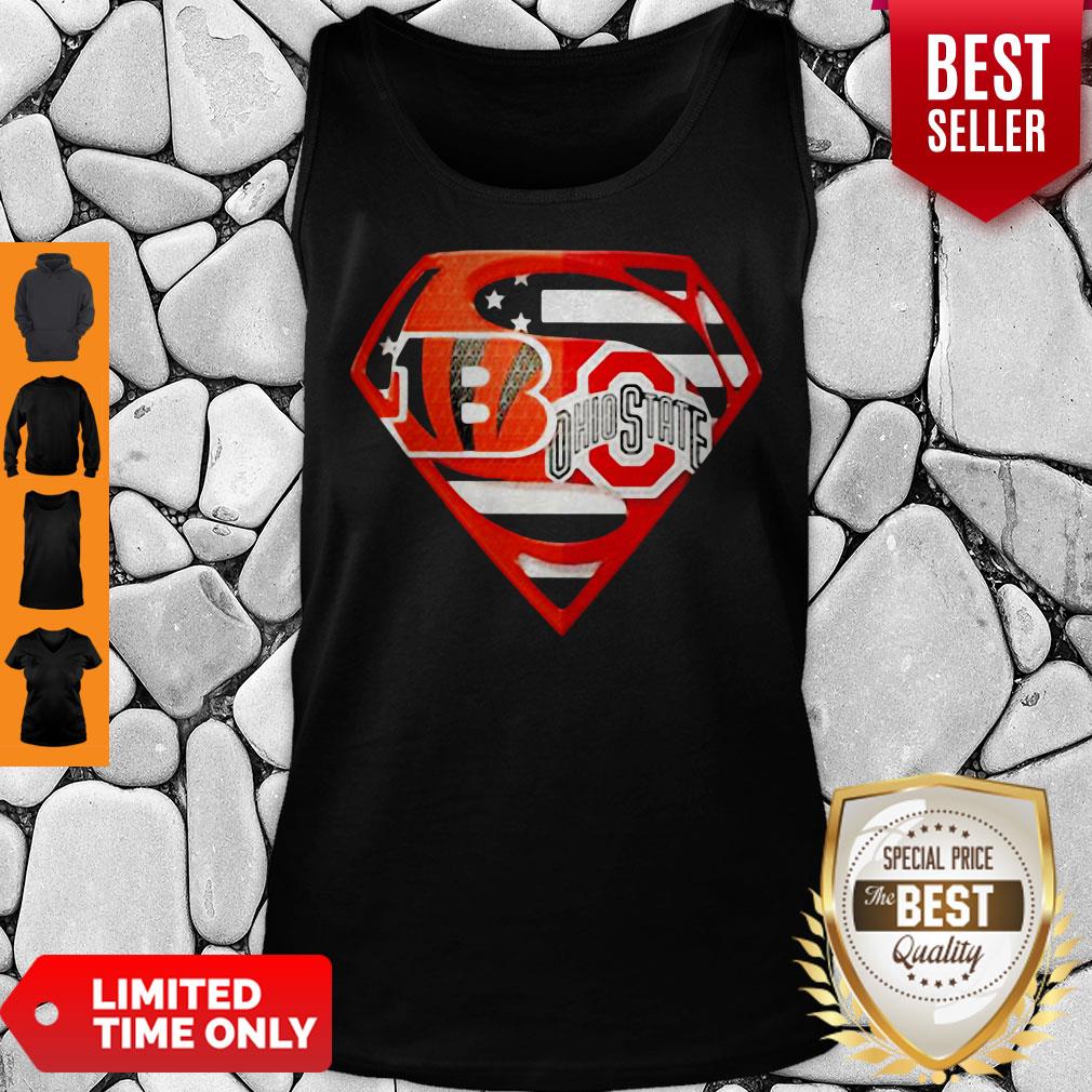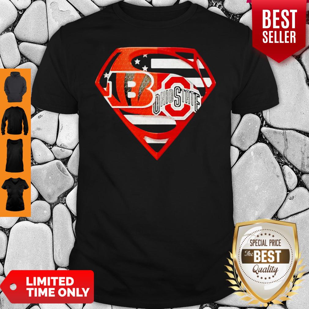 Superhero Cincinnati Bengals And Ohio State Buckeyes Diamond American Flag Independence Day Shirt