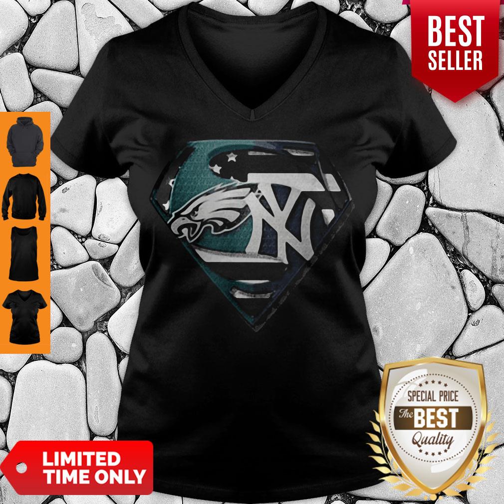 Superhero Philadelphia Eagles And New York Yankees Diamond American Flag Independence Day Shirt