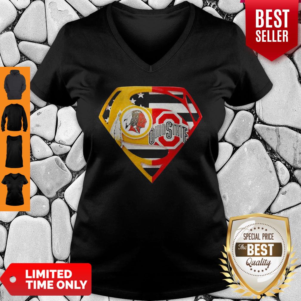 Superhero Washington Redskins And Ohio State Buckeyes Diamond American Flag Shirt