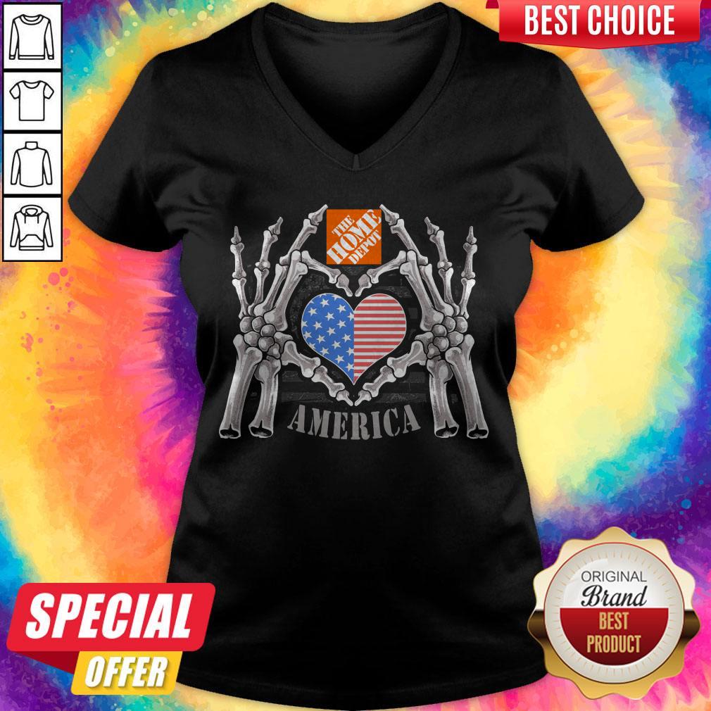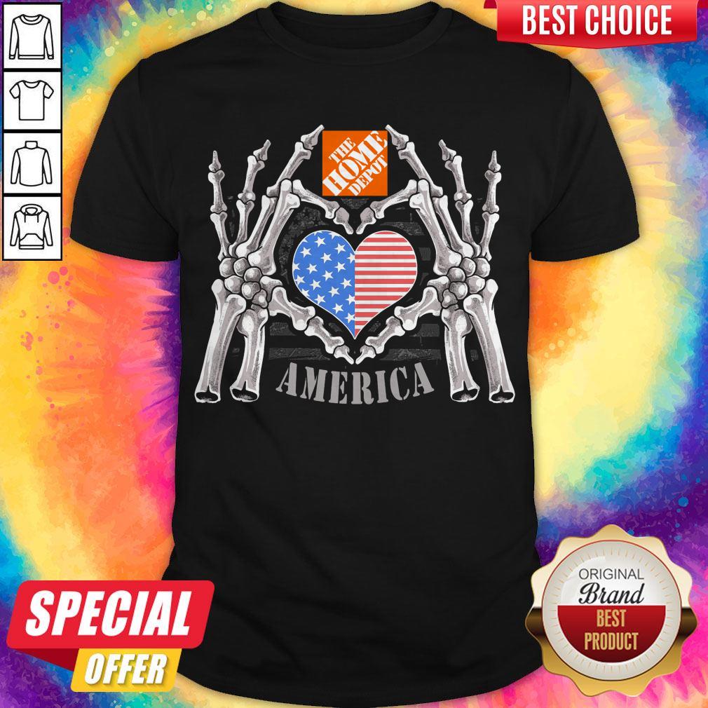 The Home Depot Logo America USA Forever Skeleton Skull Bones Hand Shirt