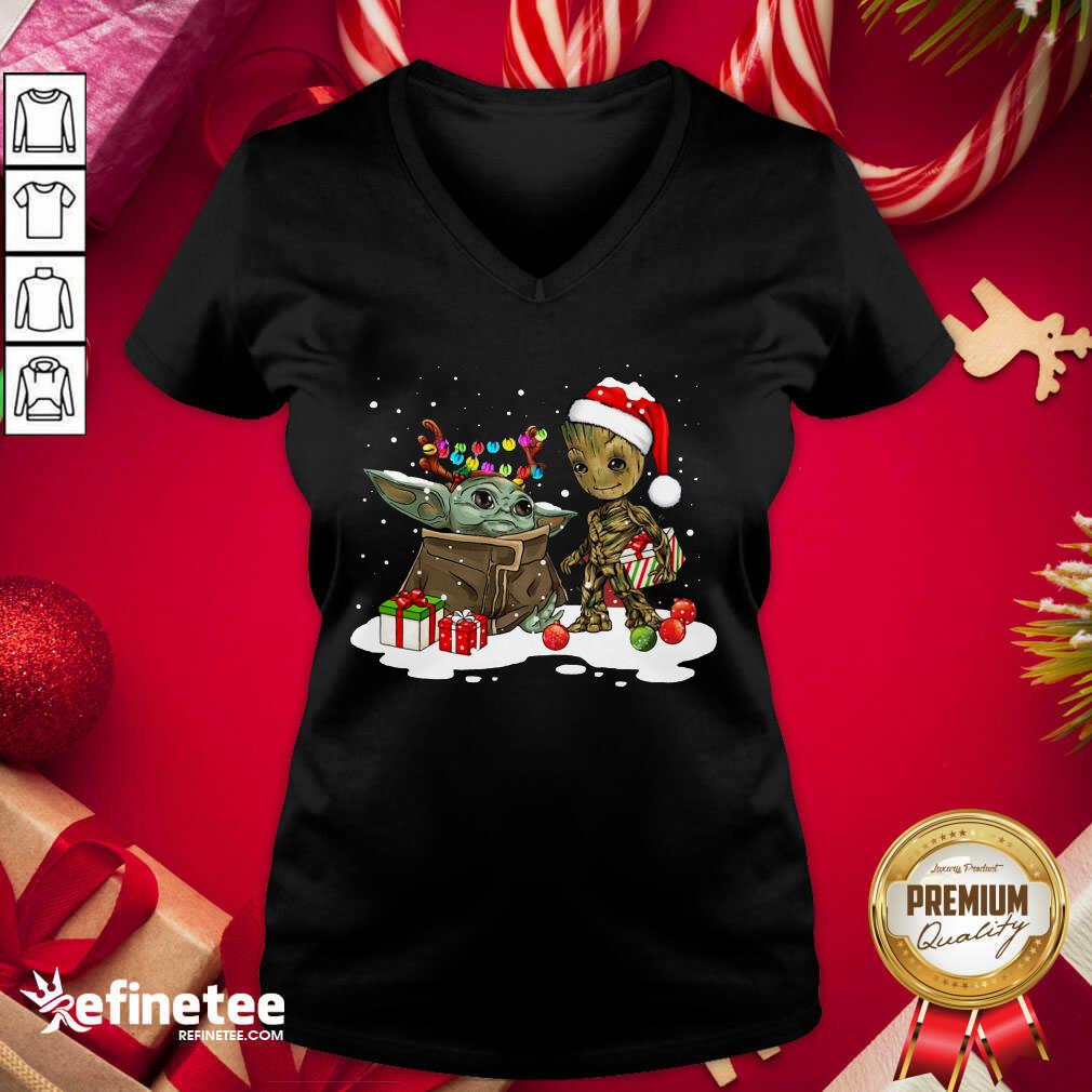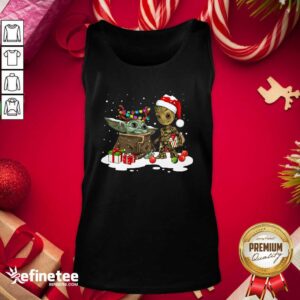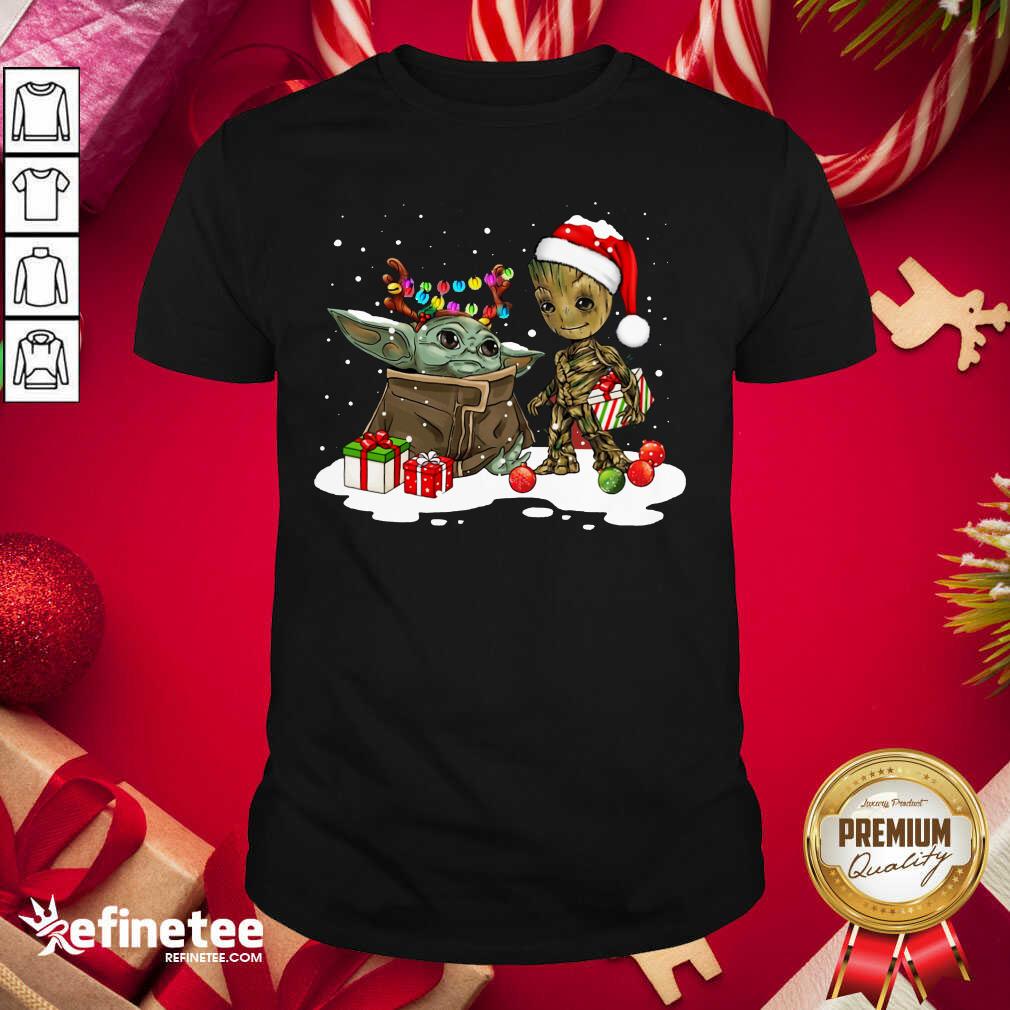 Top Baby Yoda And Baby Groot Happy Merry Christmas Shirt