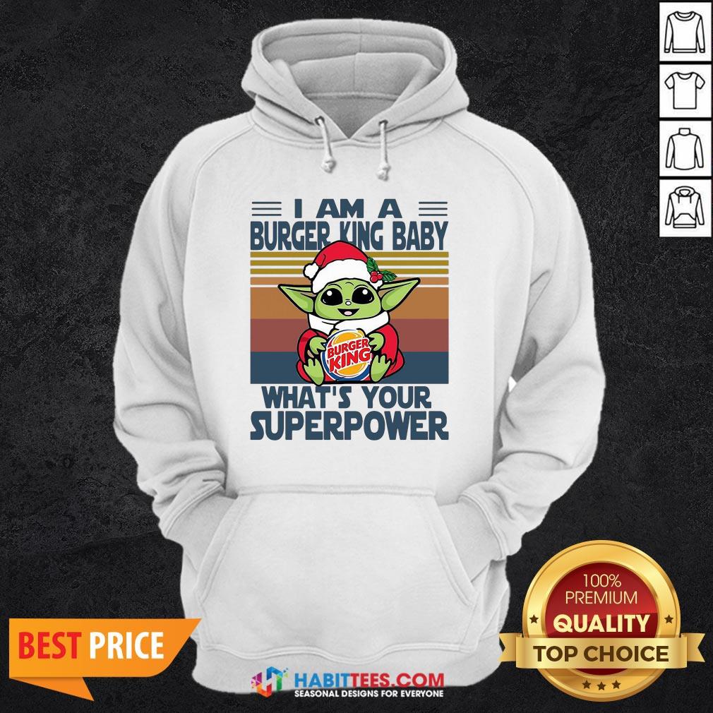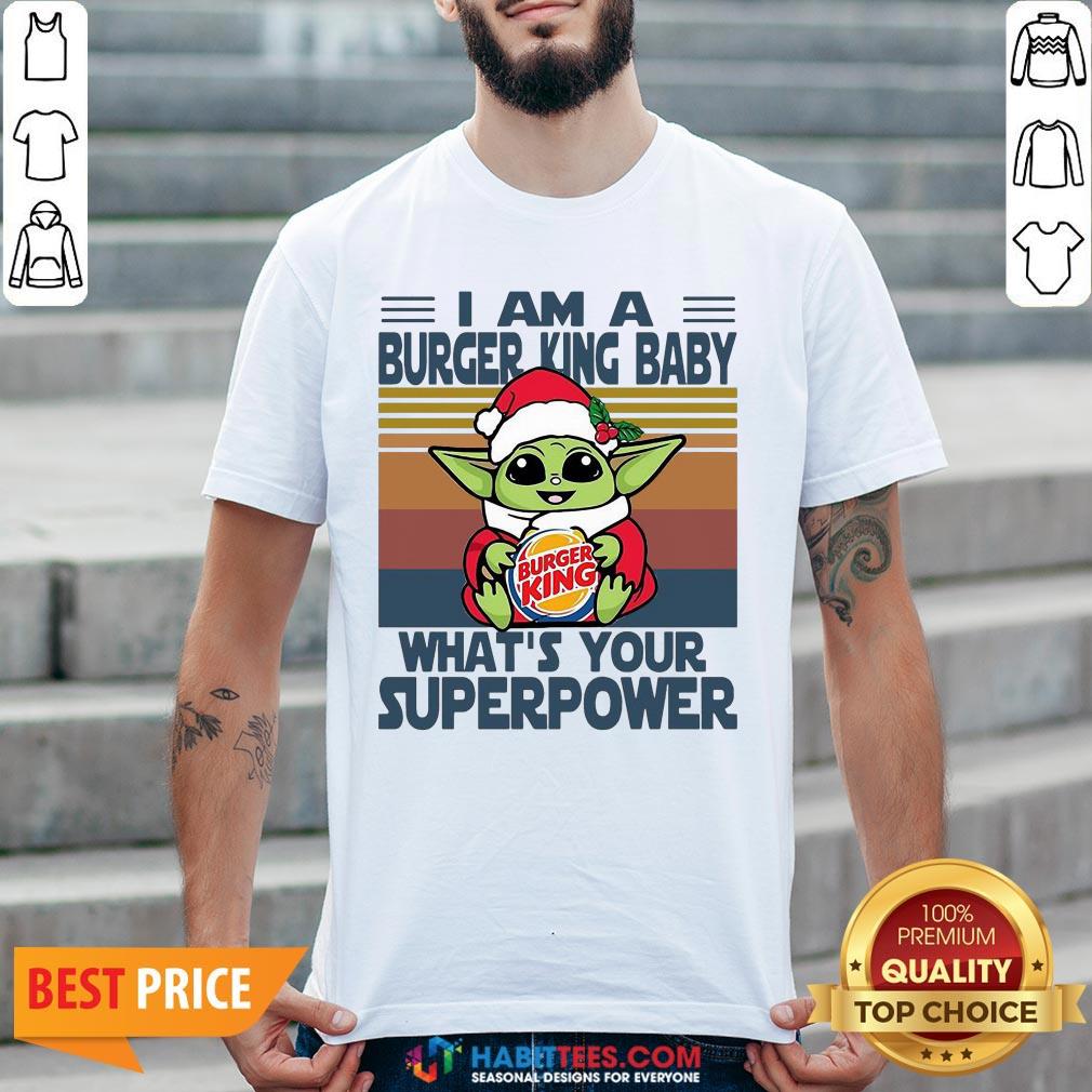 Top Baby Yoda Santa Hug Burger King What’s Your Superpower Vintage Retro Christmas Shirt