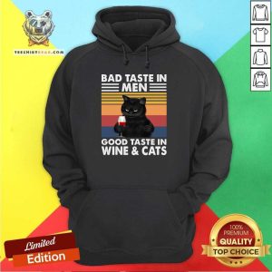 Top Black Cat Bad Taste In Men Good Taste In Wine And Cats Vintage 2021 Shirt