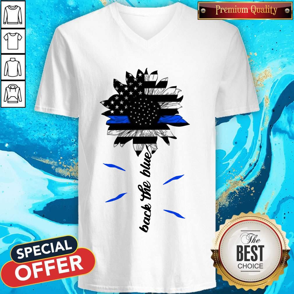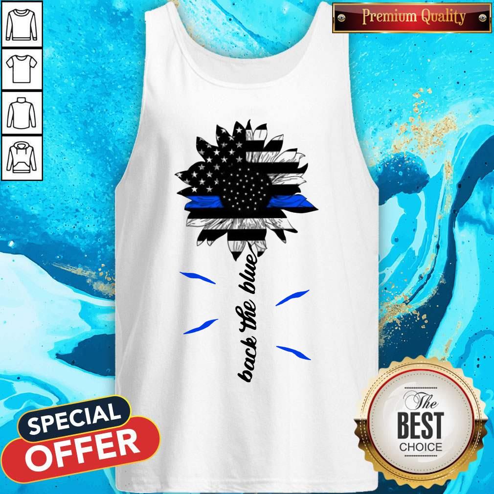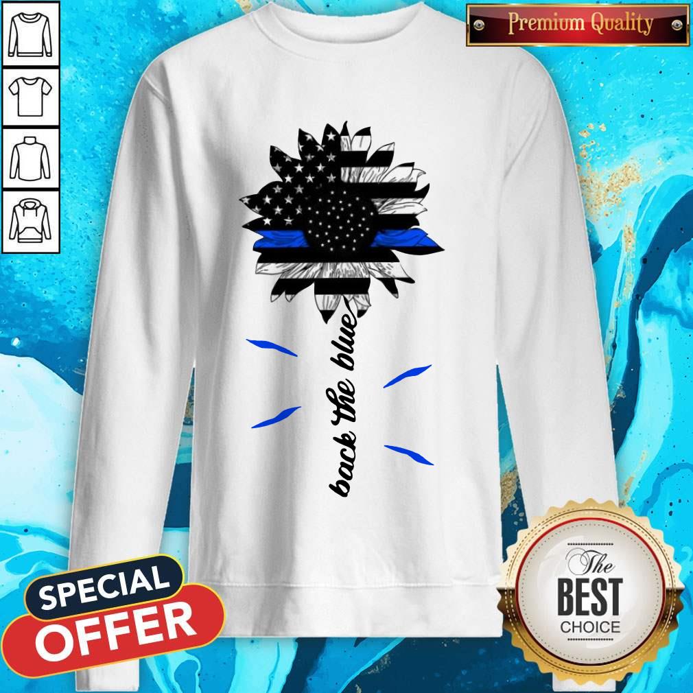 Top Black The Blue Sunflower Support Police American Flag Shirt