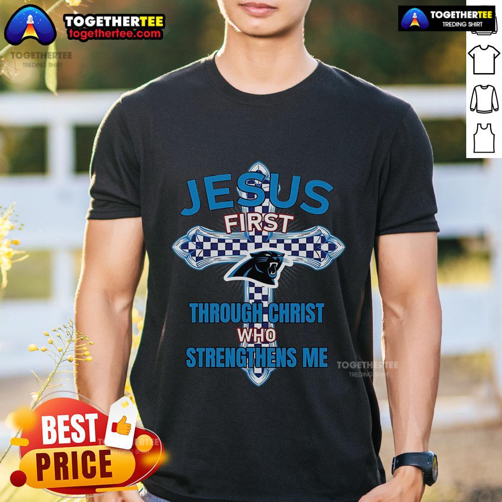 Top Carolina Panthers Jesus First Through Christ Who Strengthens Me T-Shirt