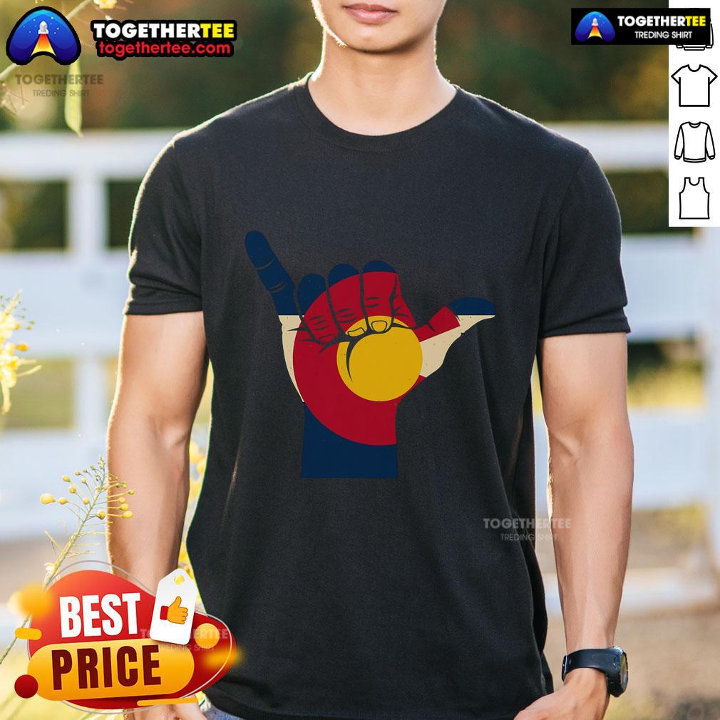 Top Colorado Flag Shake Hand Sign T-Shirt