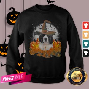Top Cute Saint Bernard Dog Witch On Halloween Pumpkin Shirt