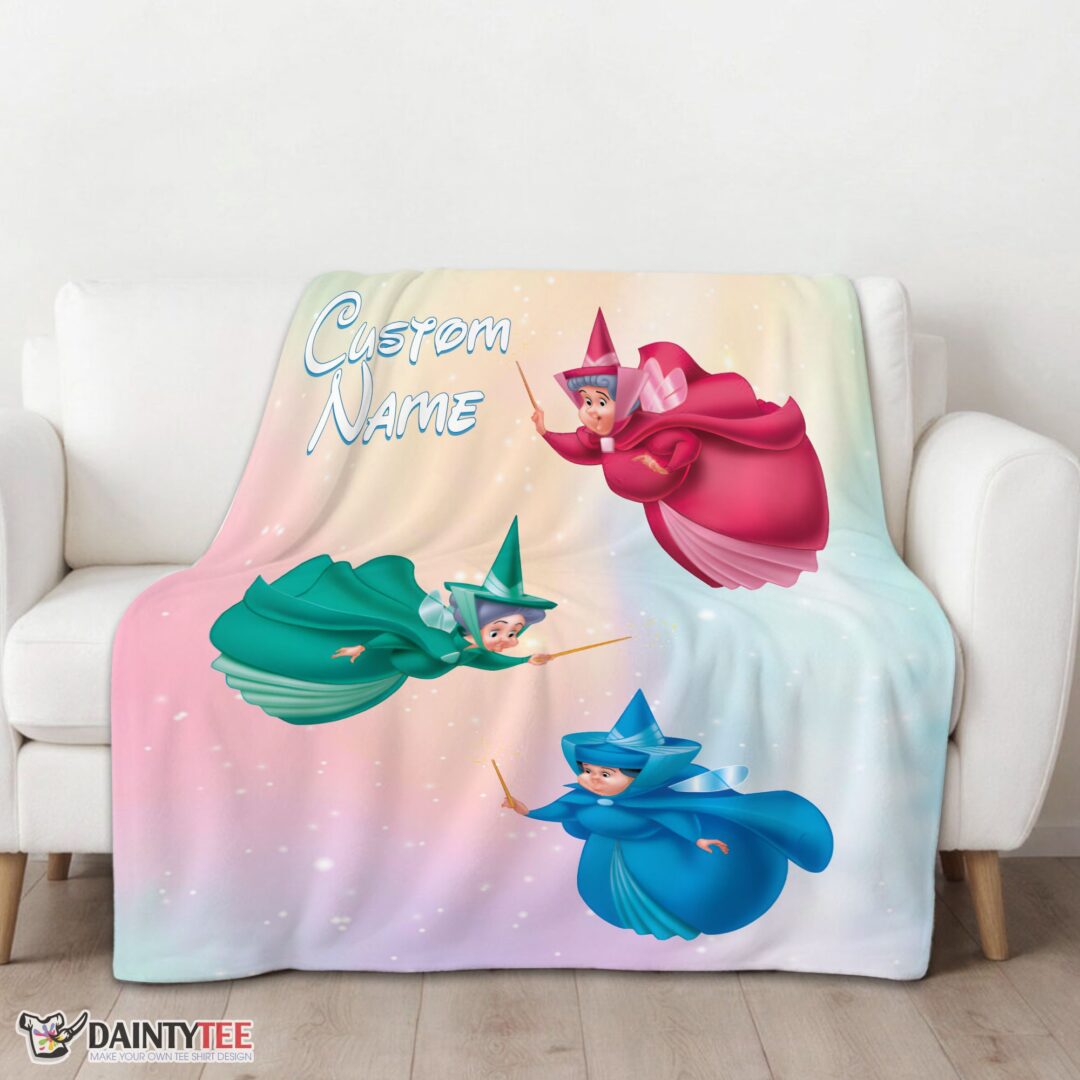 Top Disney Sleeping Beauty Three Good Fairies Blanket Fleece Customized Blanket