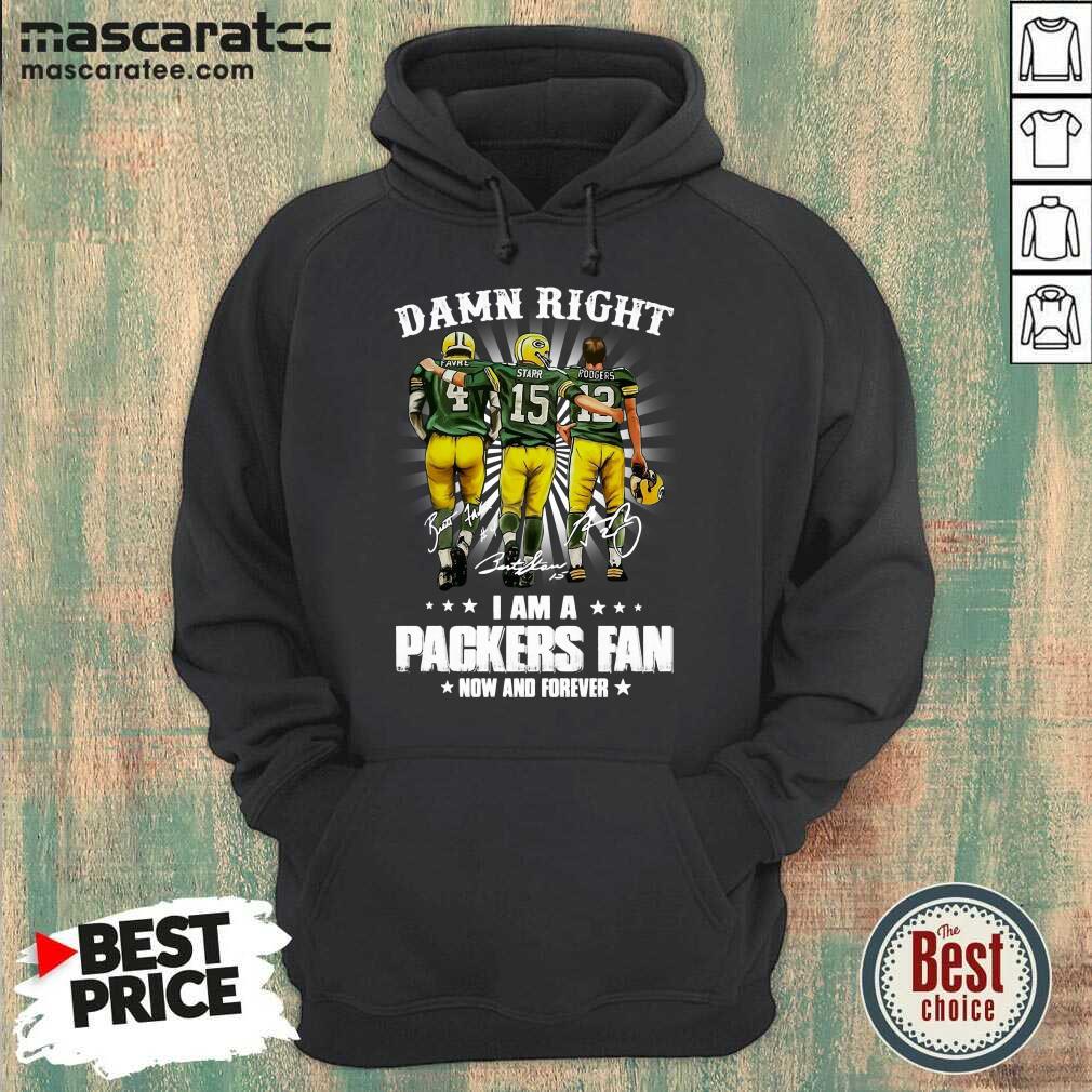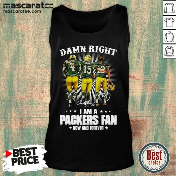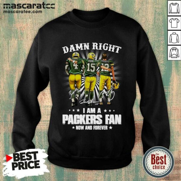Top Favre Starr Rodgers Damn Right I Am A Green Bay Packers Fan Now Forever Signatures Shirt