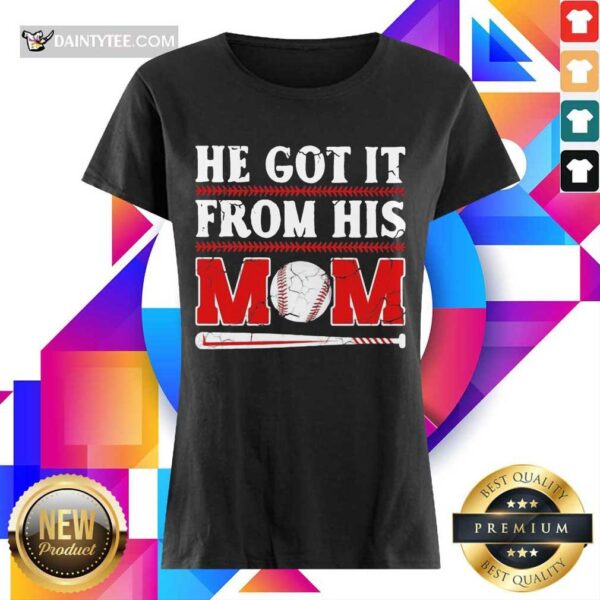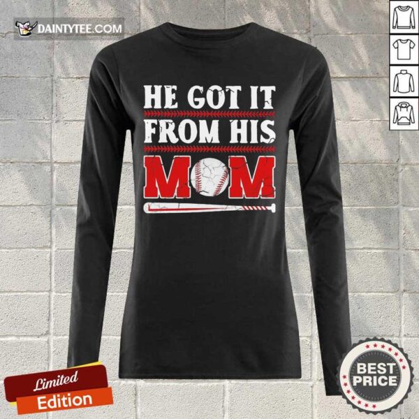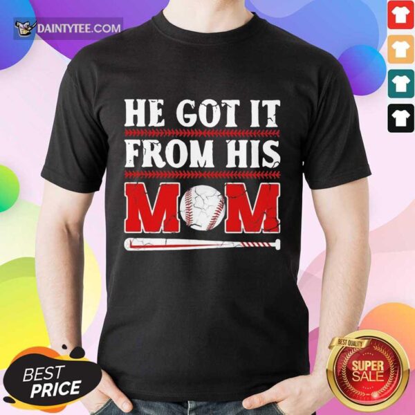 Top He Got It From His Mom Baseball Excited Shirt