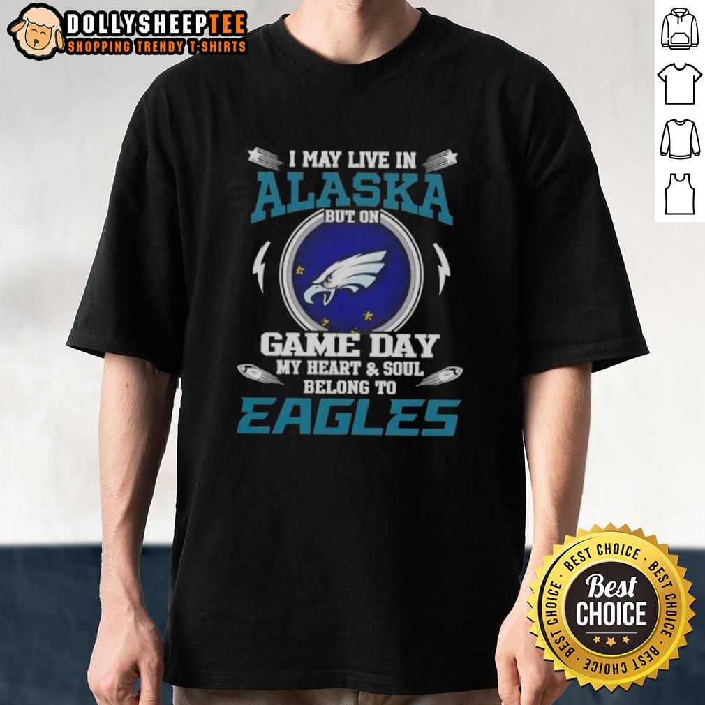 Top I May Live In Alaska But On Game Day My Heart And Soul Belongs To Philadelphia Eagles T-Shirt