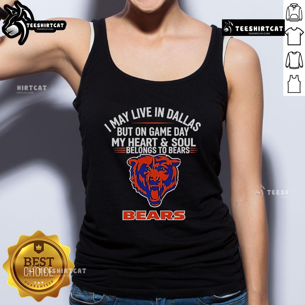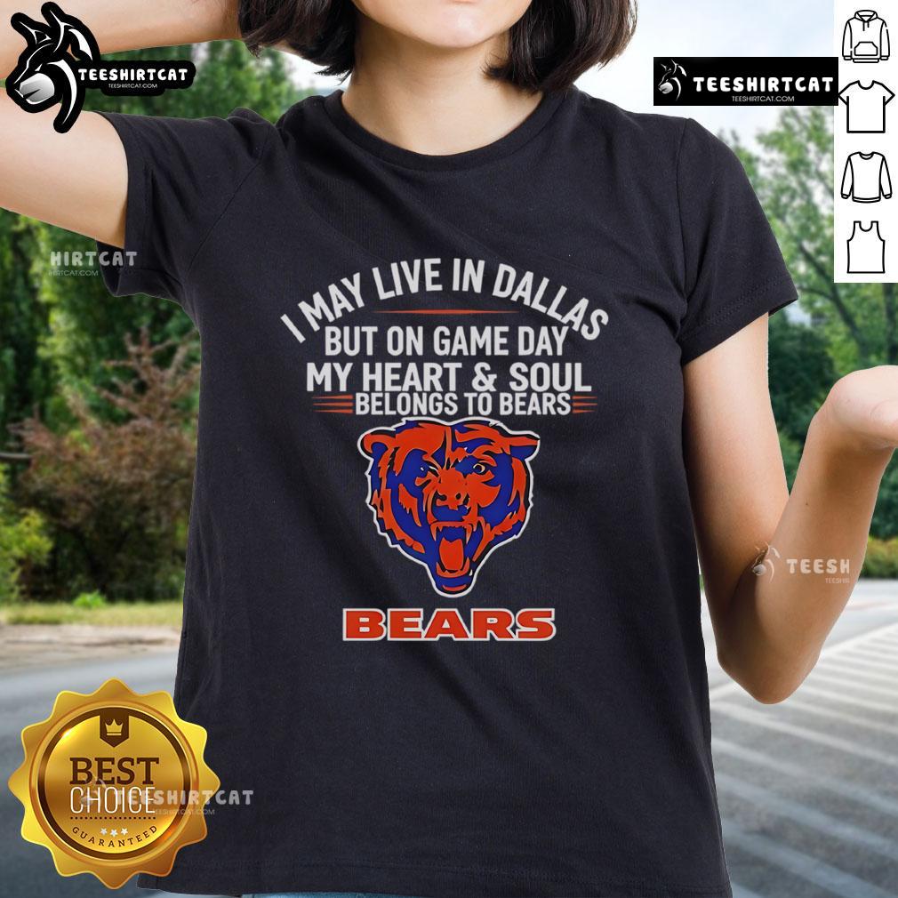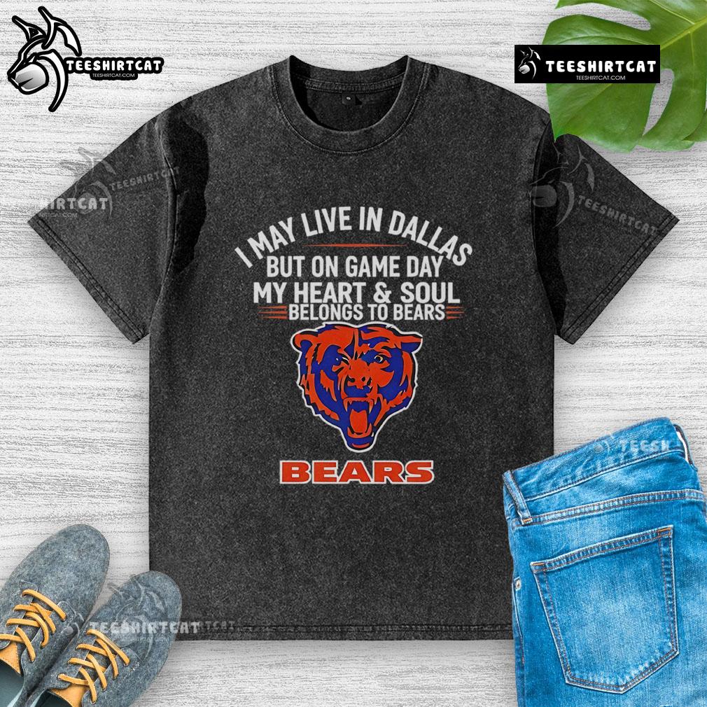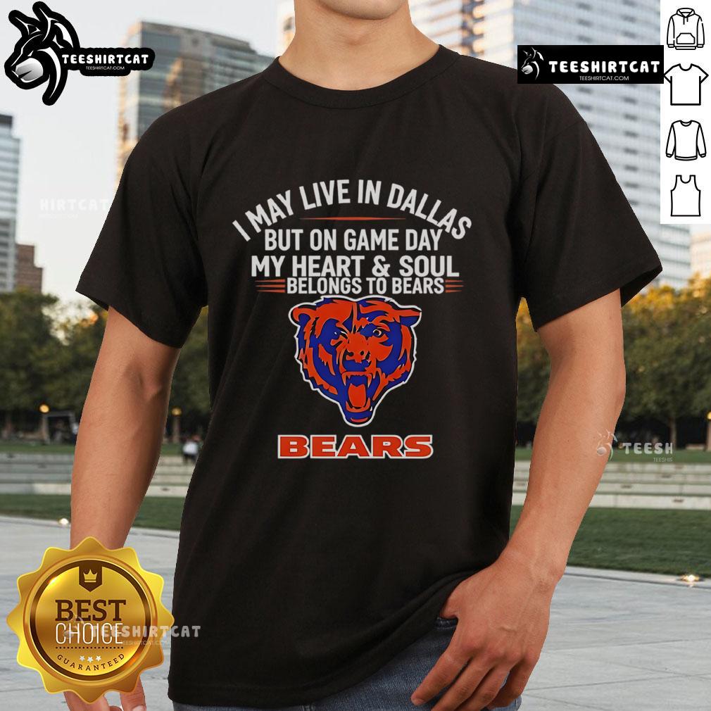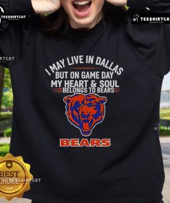 Top I May Live In Dallas But On Gameday My Heart And Soul Belong To Chicago Bears T-Shirt