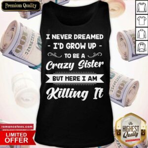 Top I Never Dreamed I’d Grow Up To Be A Crazy Sister But Here I Am Killing It Shirt