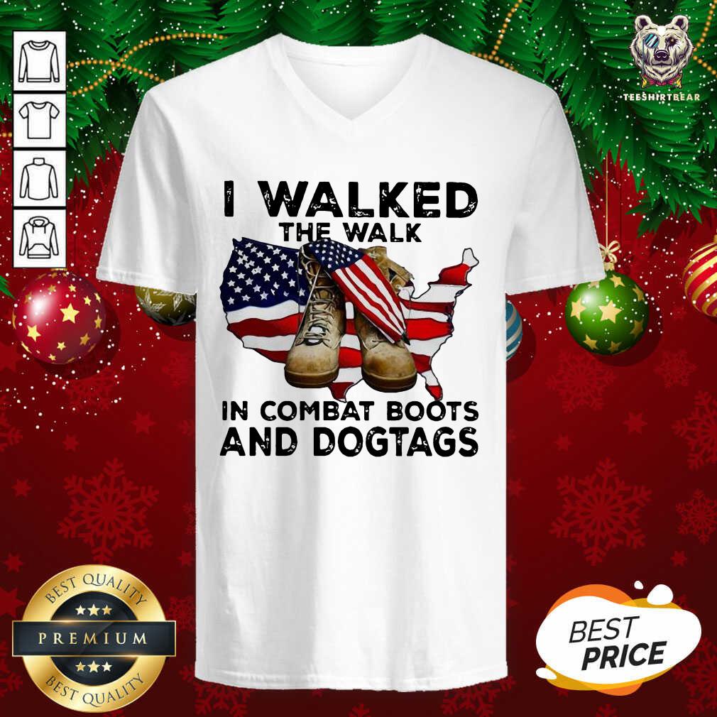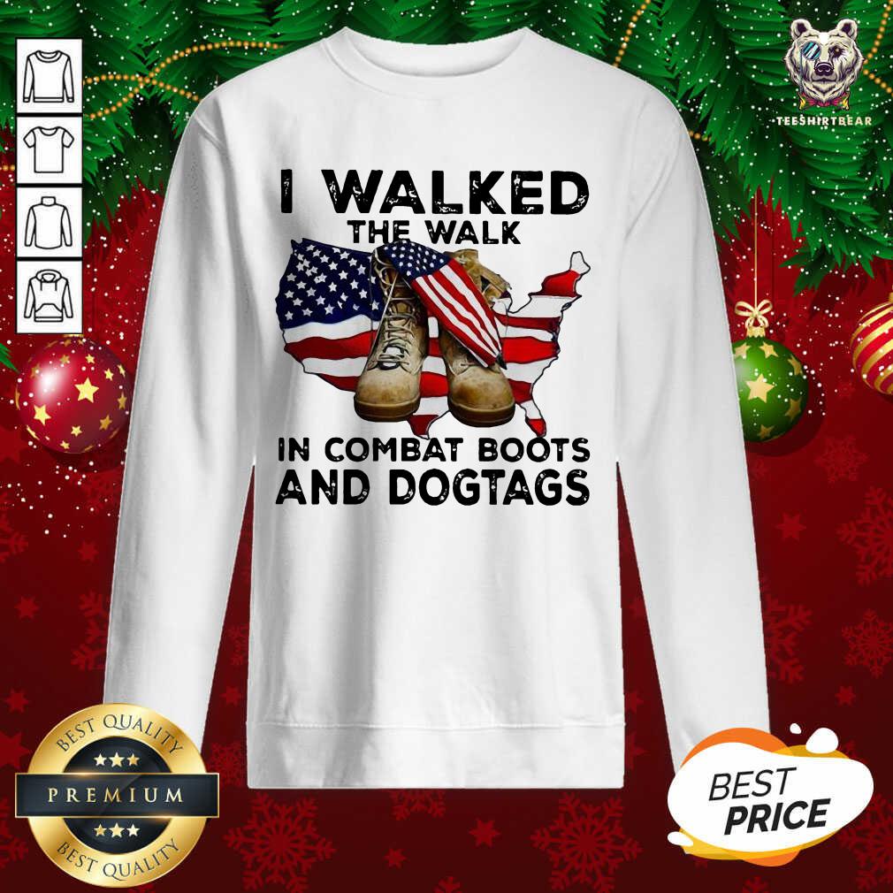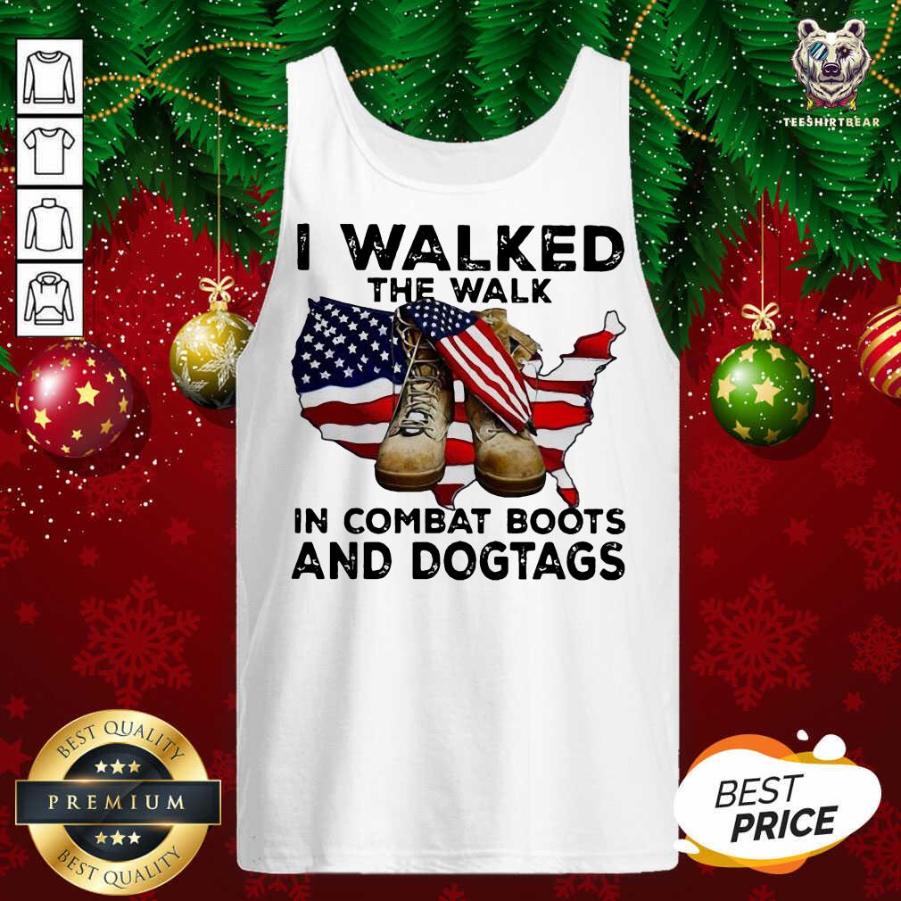 Top I Walked The Walk In Combat Boots And Dogtags Shoe American Flag Shirt