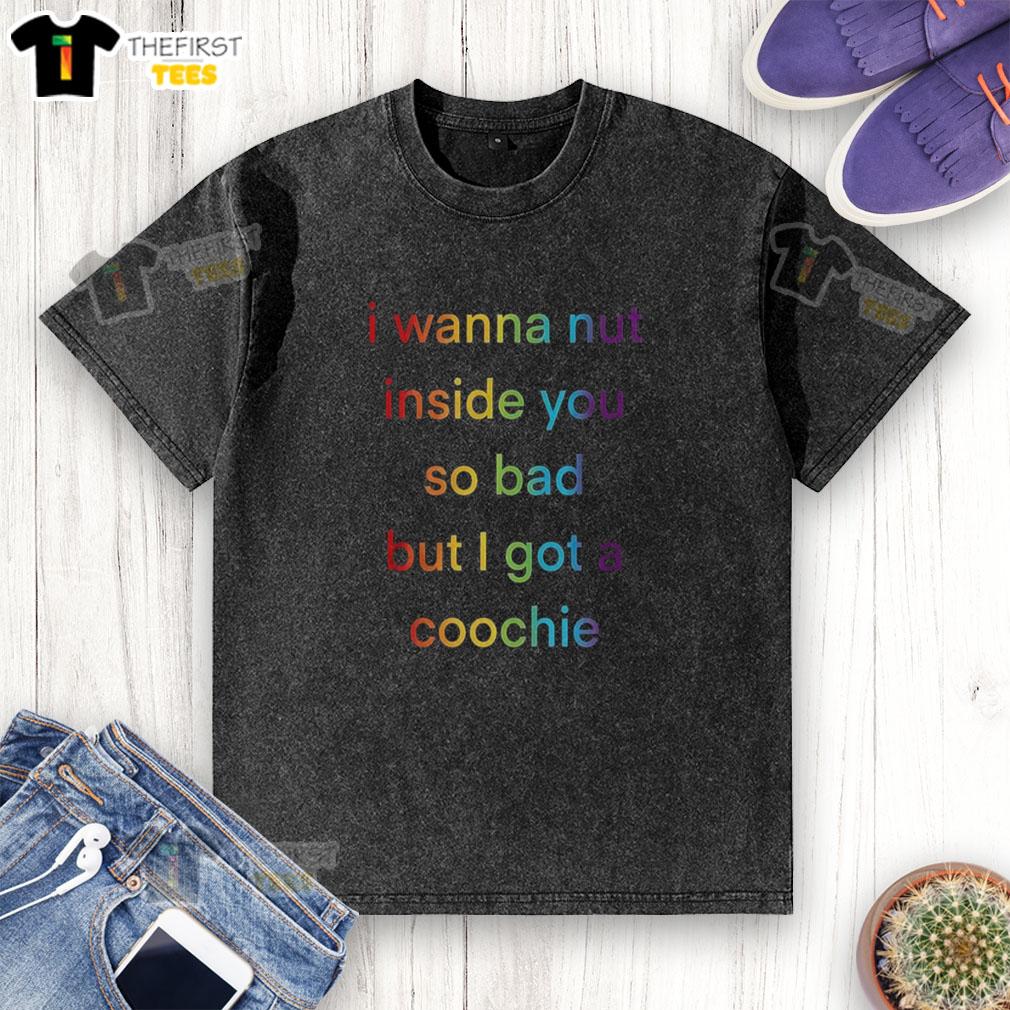 Top I Wanna Nut Inside You So Bad But I Got A Coochie Rainbow Text T-Shirt