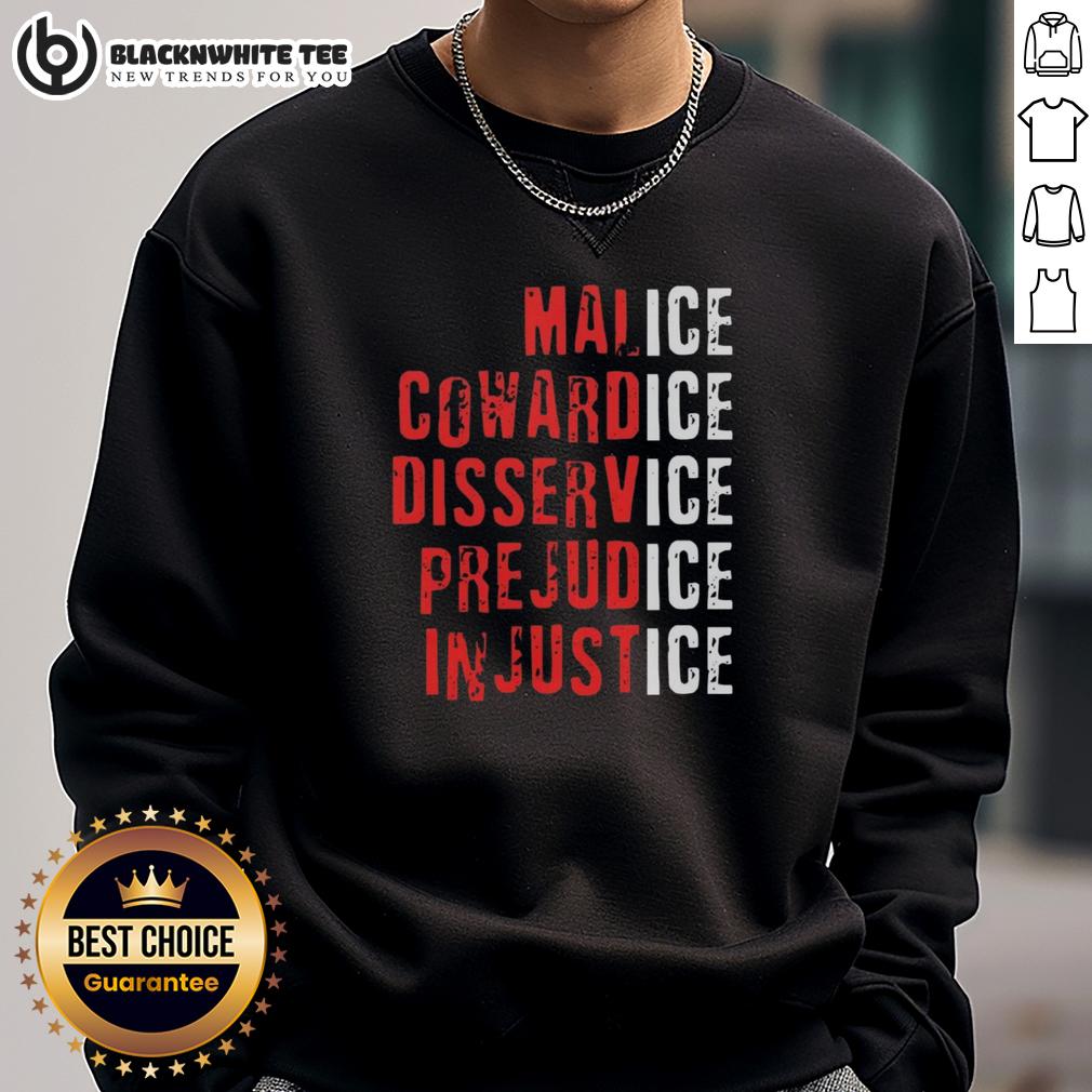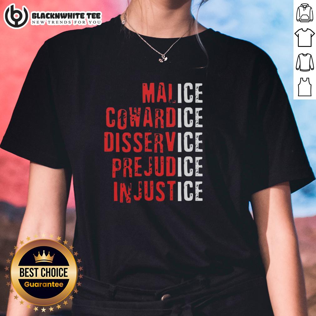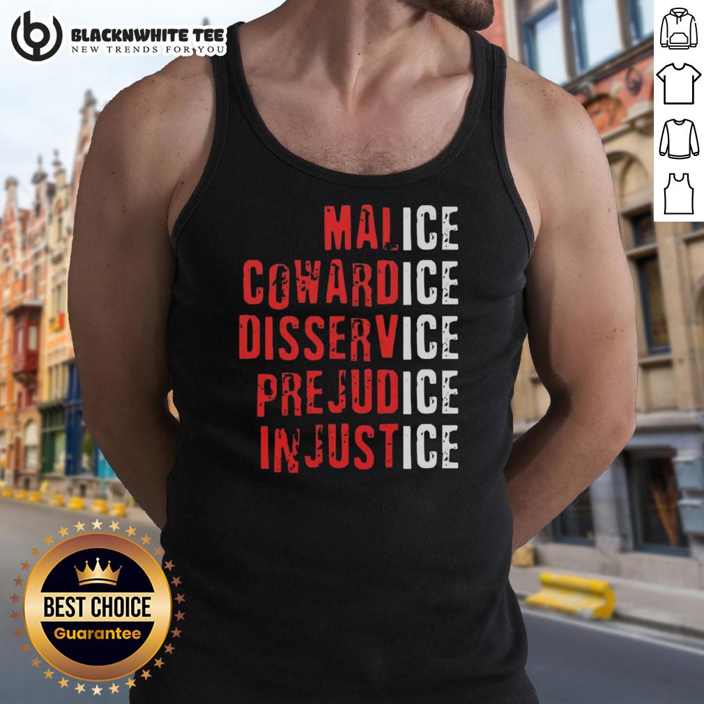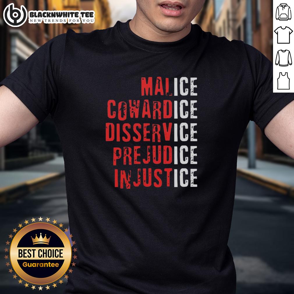 Top Ice Malice Cowardice Disservice Prejudice Injustice T-Shirt