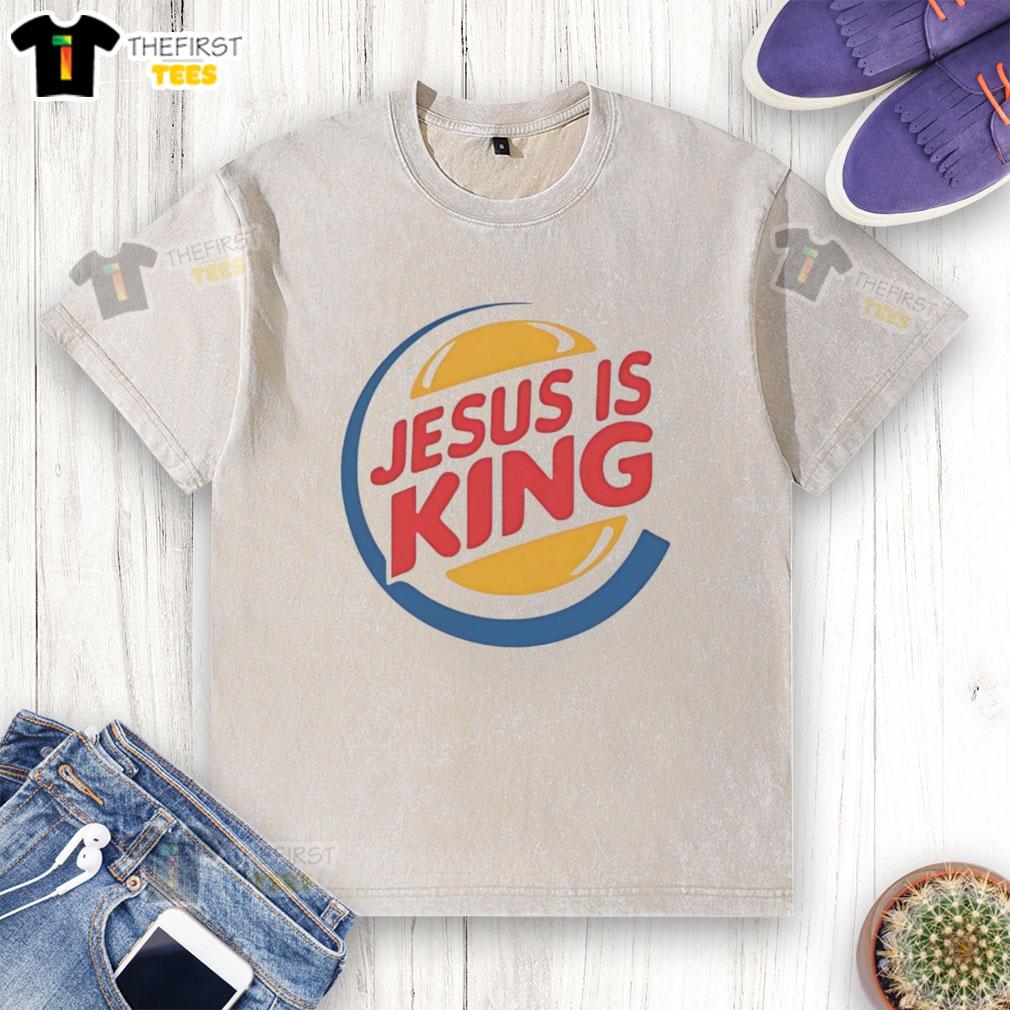 Top Jesus Is King Style Burger Logo T-Shirt
