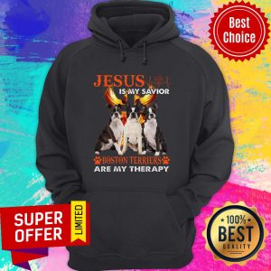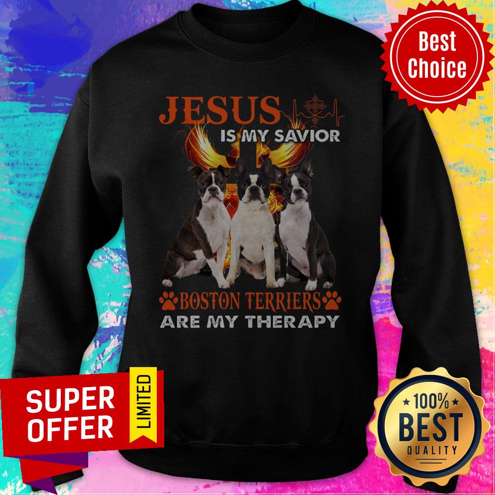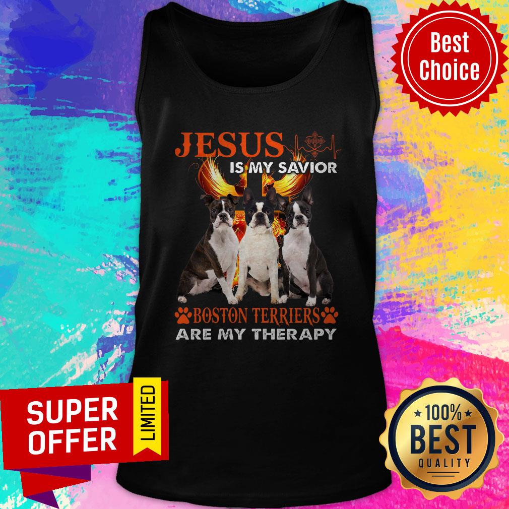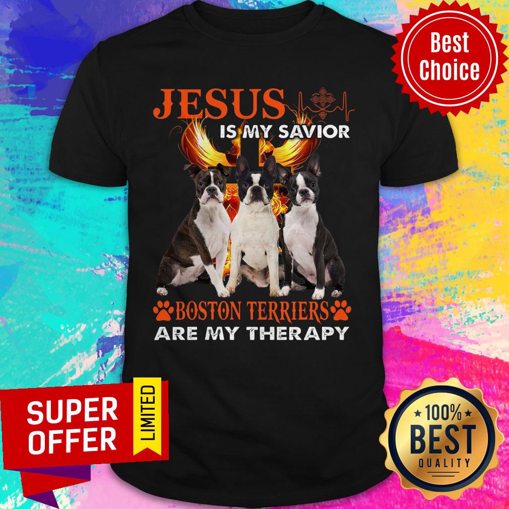 Top Jesus Is My Savior Boston Terriers Are My Therapy Shirt