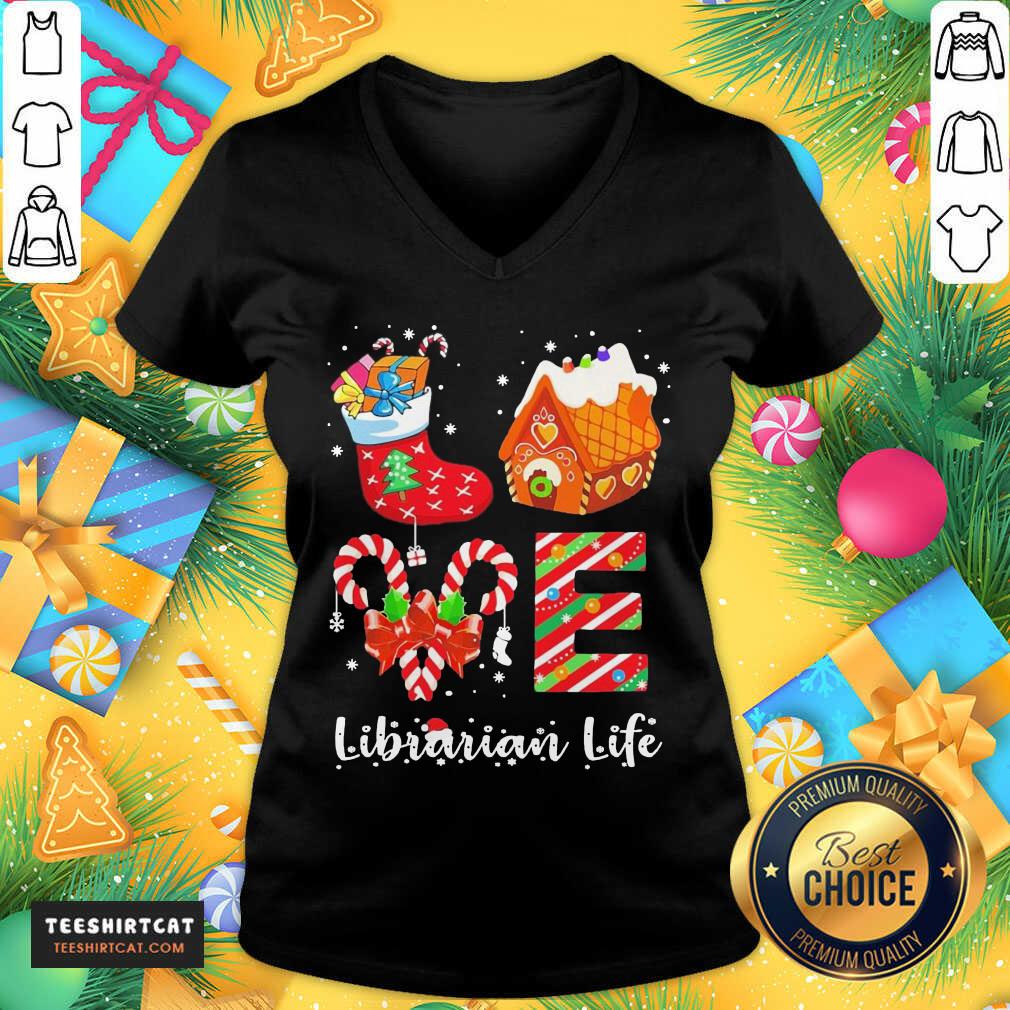 Top Love Socks House Librarian Life Merry Christmas Shirt
