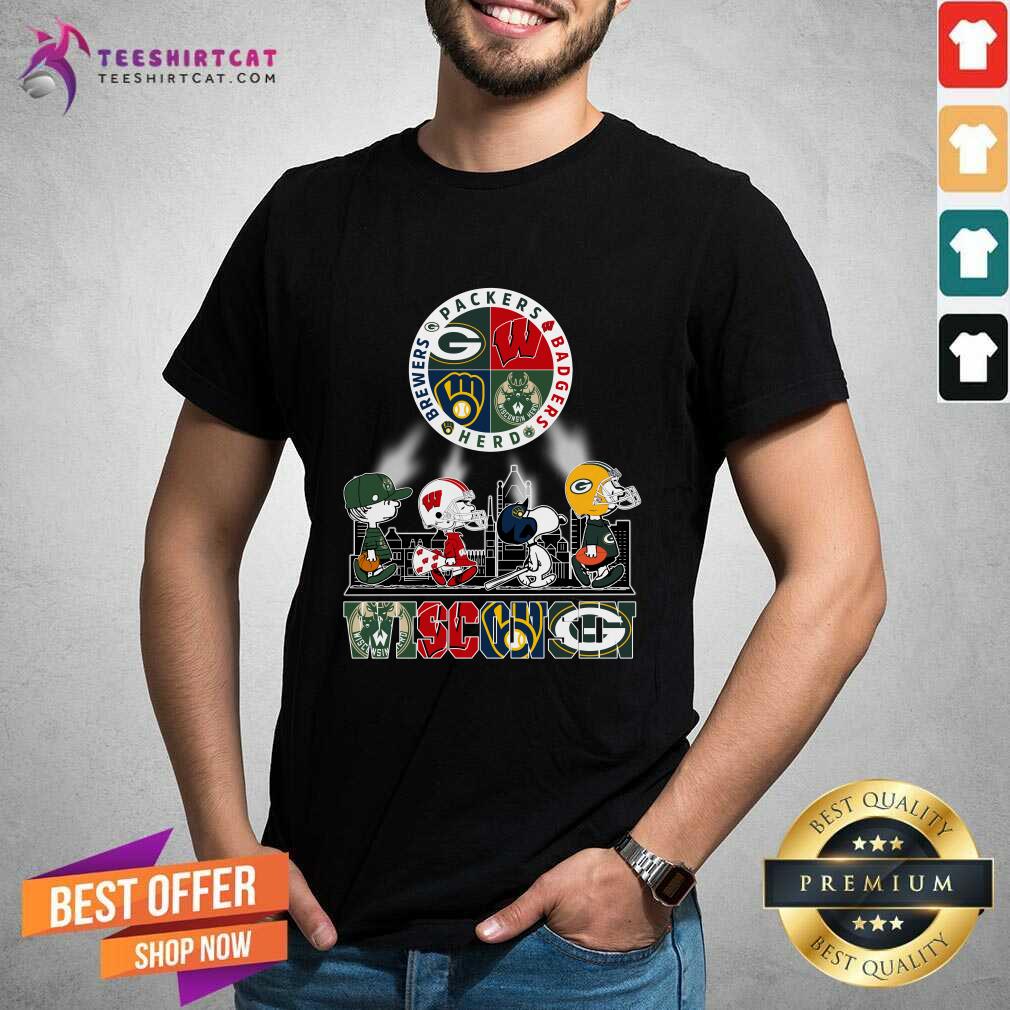Top Peanuts Characters Walking Wisconsin Sports Team Skyline T-Shirt
