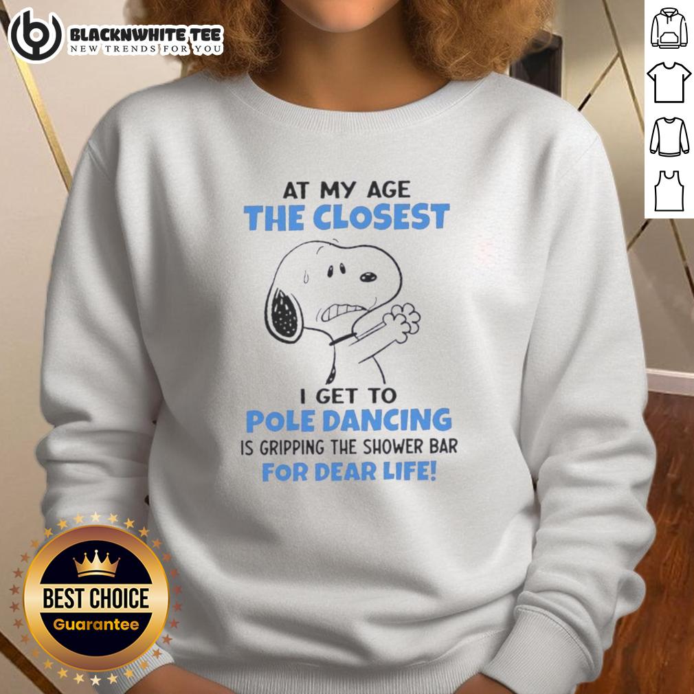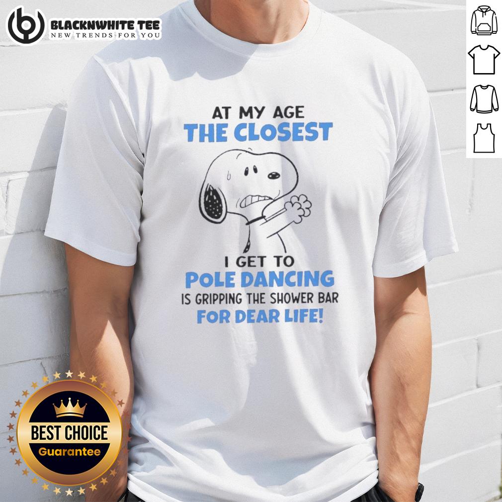 Top Peanuts Snoopy At My Age The Closest I Get To Pole Dancing Is Gripping The Shower Bar For Dear Life T-Shirt