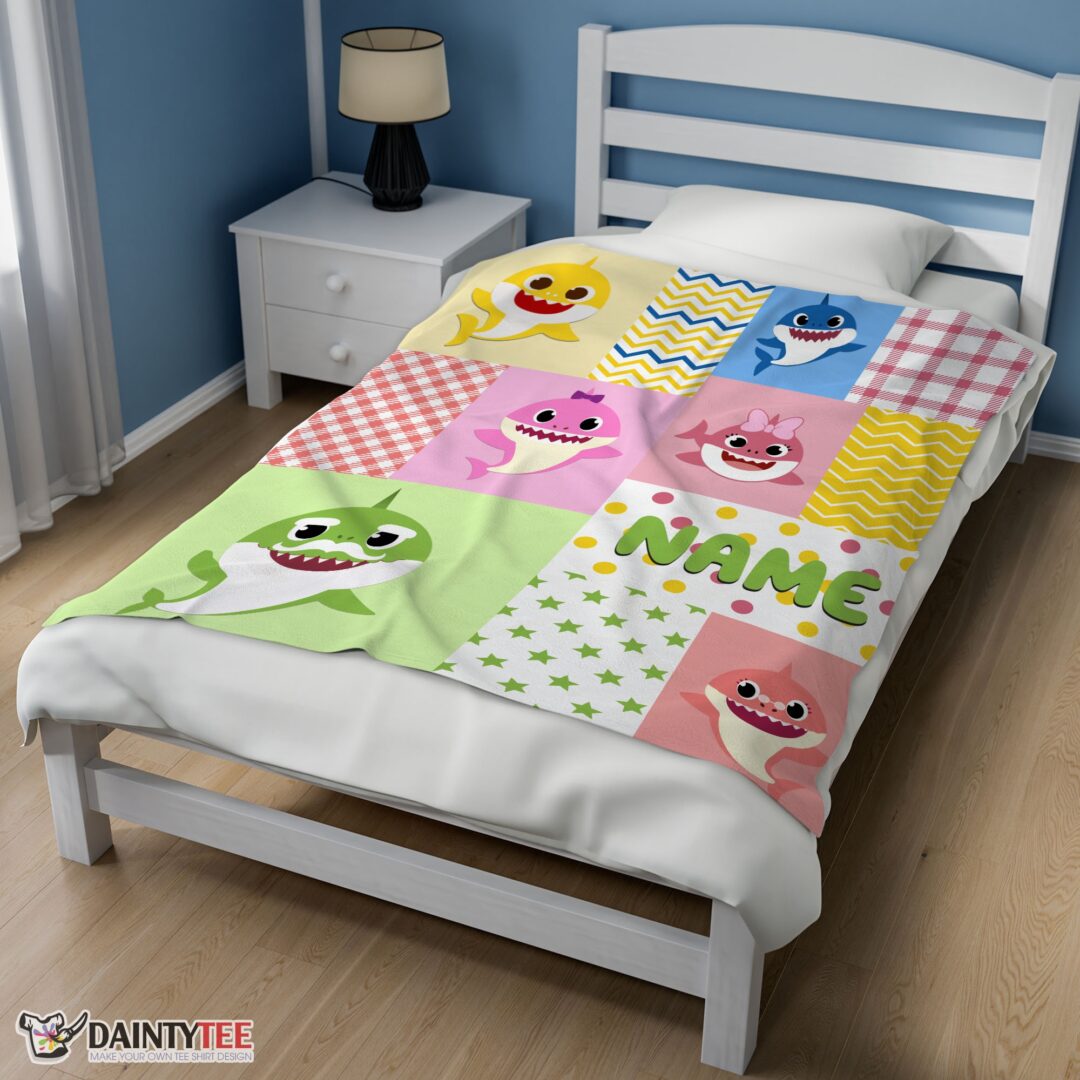 Top Personalized Colorful Baby Shark Blanket Fleece Customized Blanket