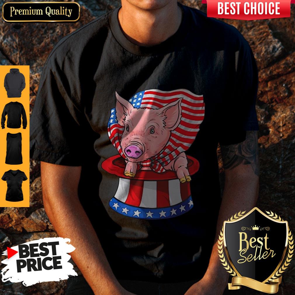 Top Pig In Hat American Flag Veteran Independence Day Shirt