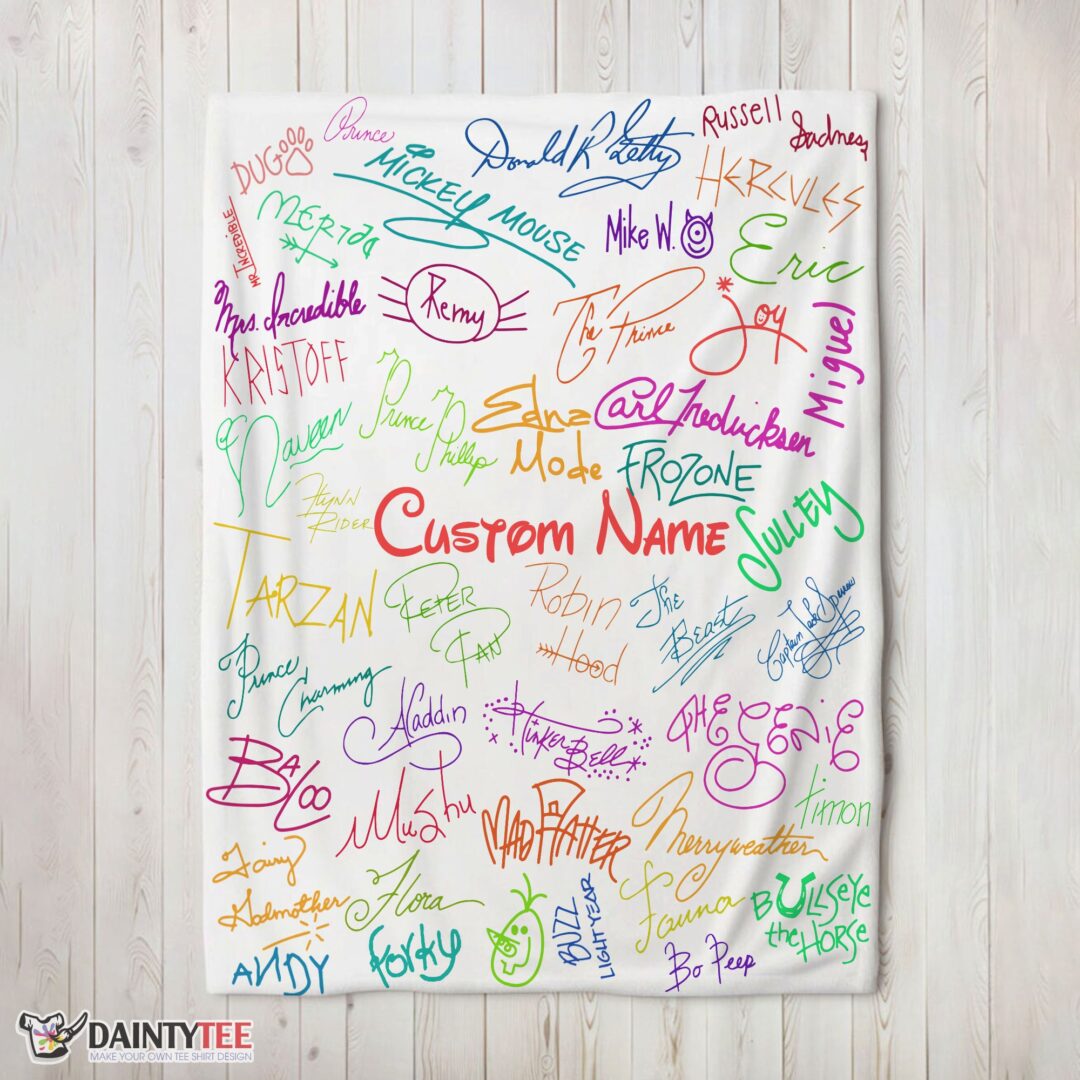Top Playful Hand Writing Typography Vibrant Name Blanket Fleece Customized Blanket
