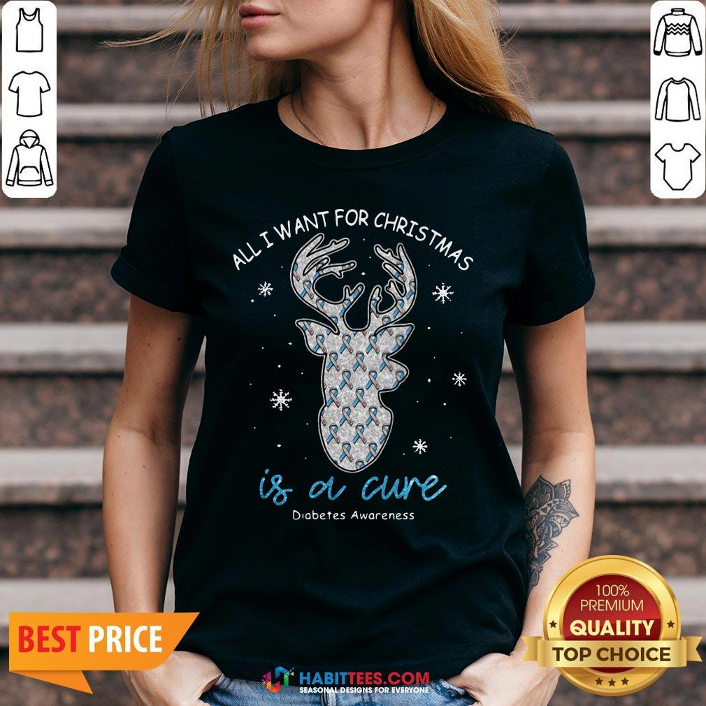 Top Reindeer All I Want For Christmas Is A Cure Diabetes Awareness Shirt