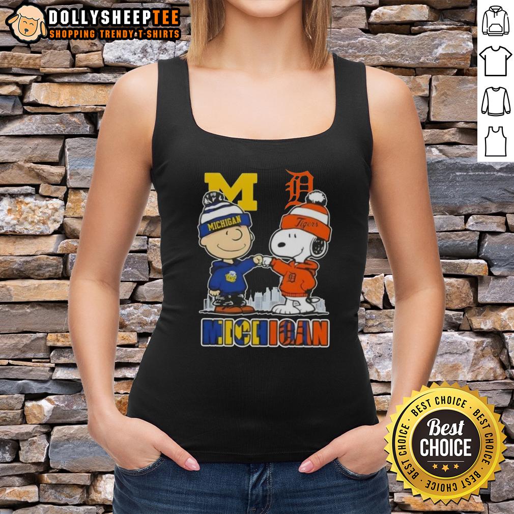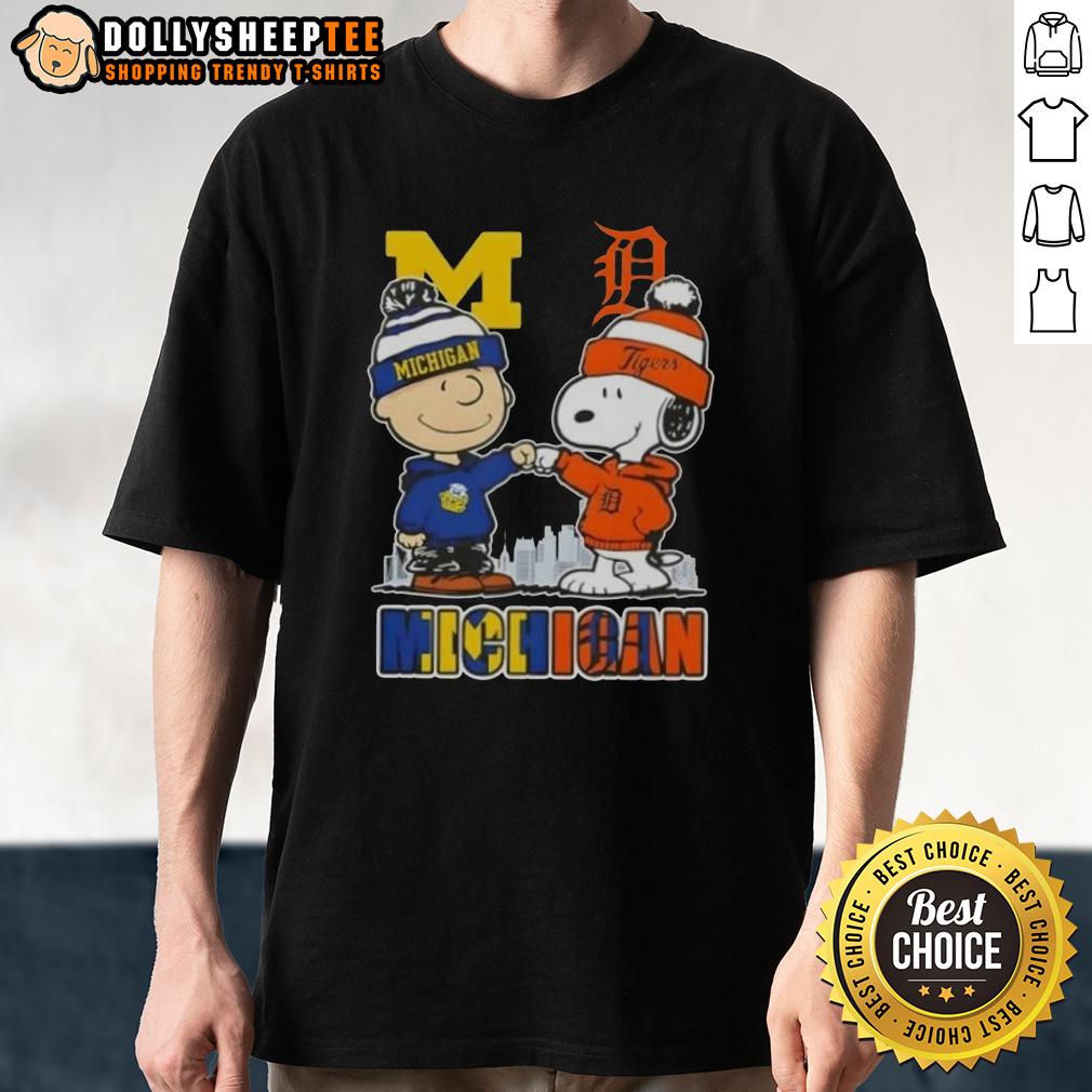 Top Snoopy And Charlie Brown Michigan Sports Wolverines X Detroit Tigers Skyline T-Shirt