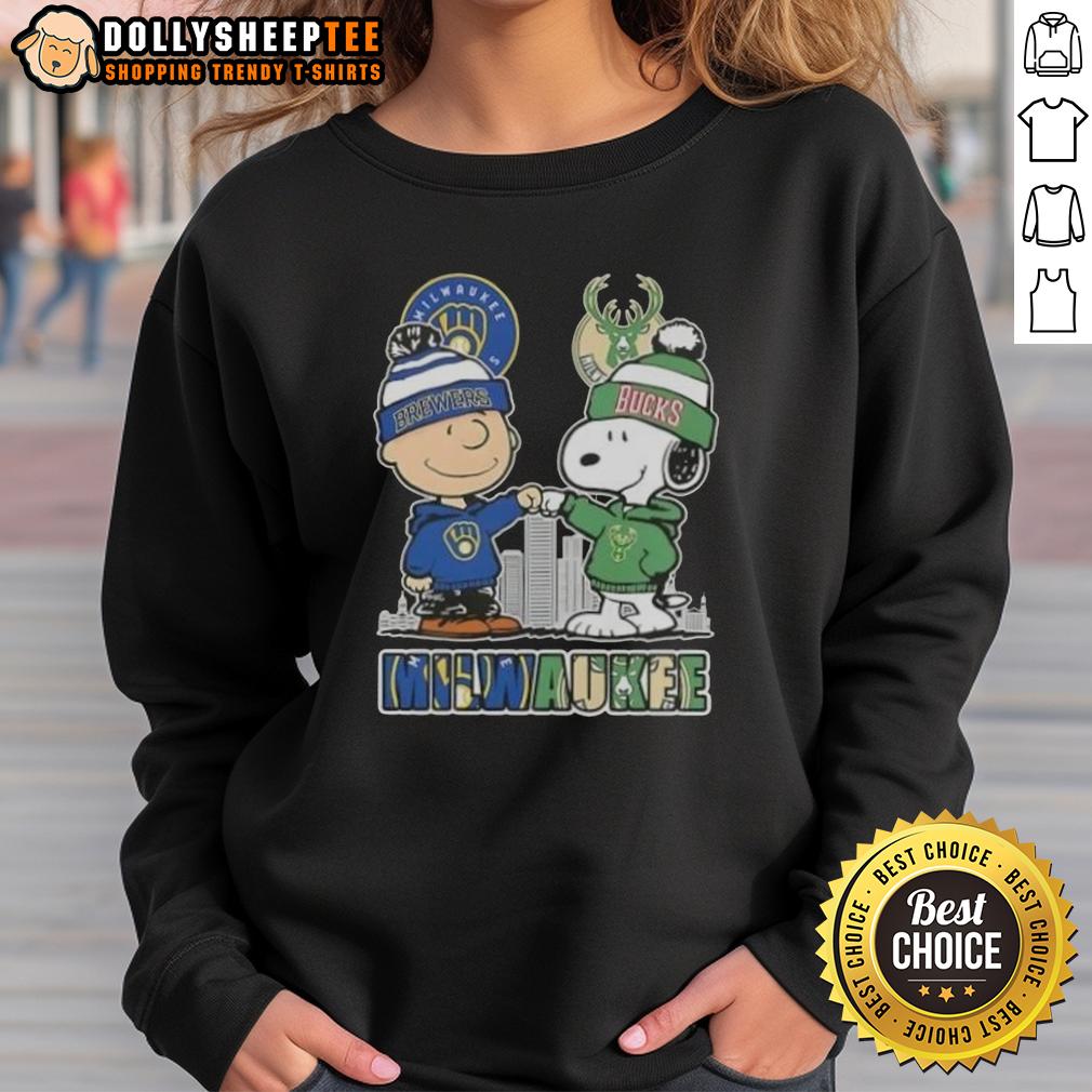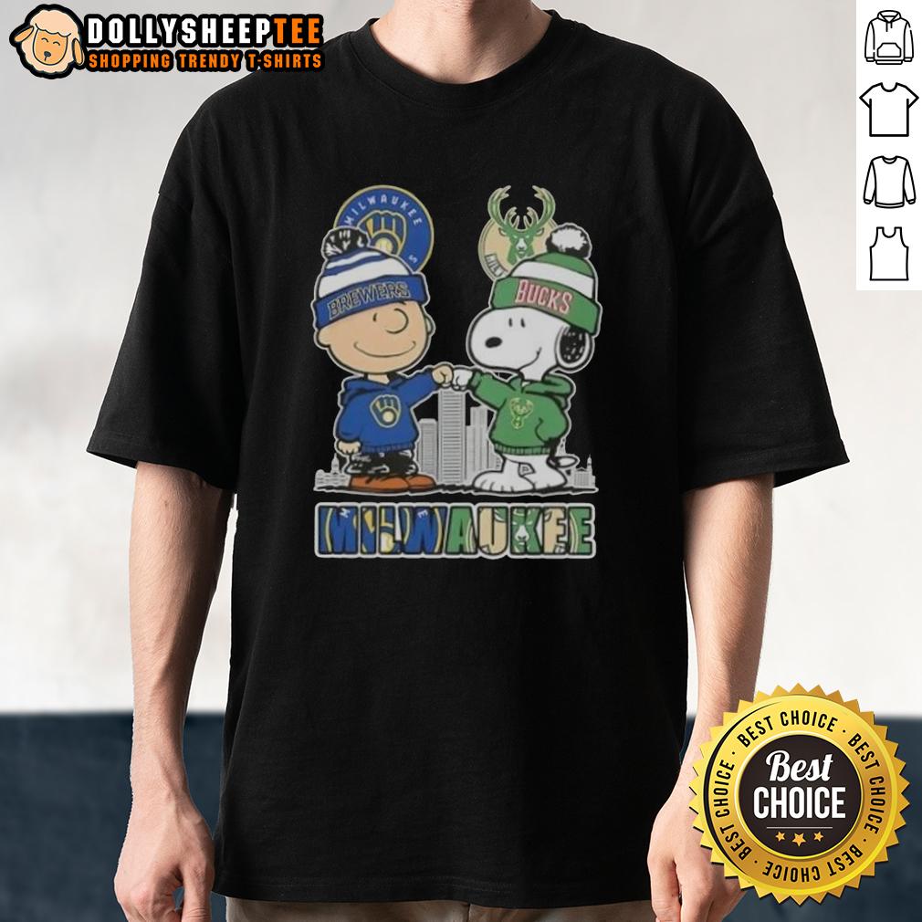 Top Snoopy And Charlie Brown Milwaukee City Sports Brewers X Bucks Skyline T-Shirt