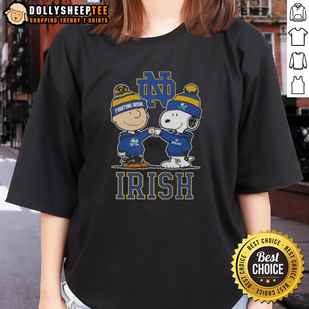 Top Snoopy And Charlie Brown Notre Dame Fighting Irish Football Skyline T-Shirt