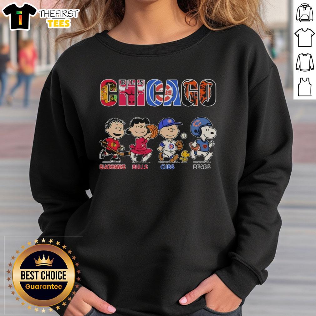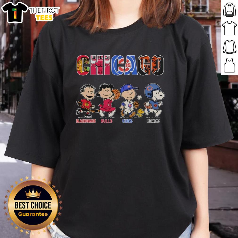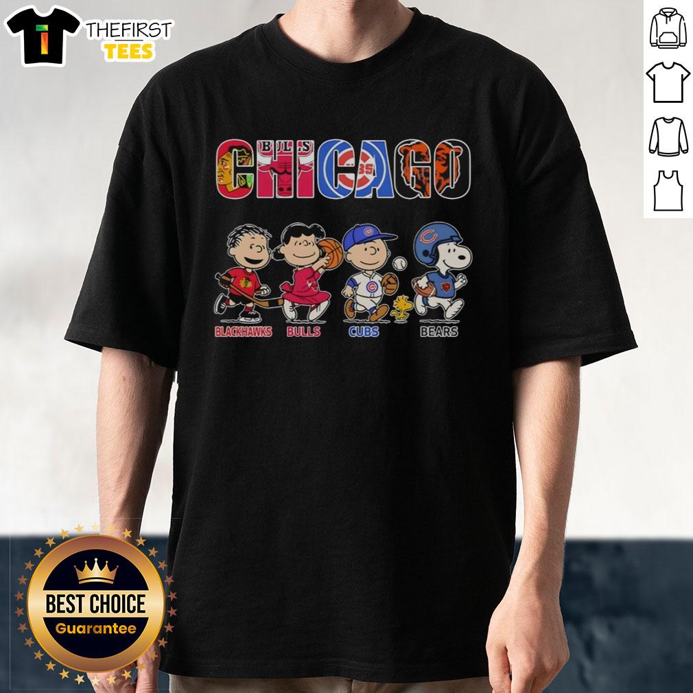 Top Snoopy And Charlie Brown With Chicago Blackhawks Chicago Bulls Chicago Cubs Chicago Bears T-Shirt