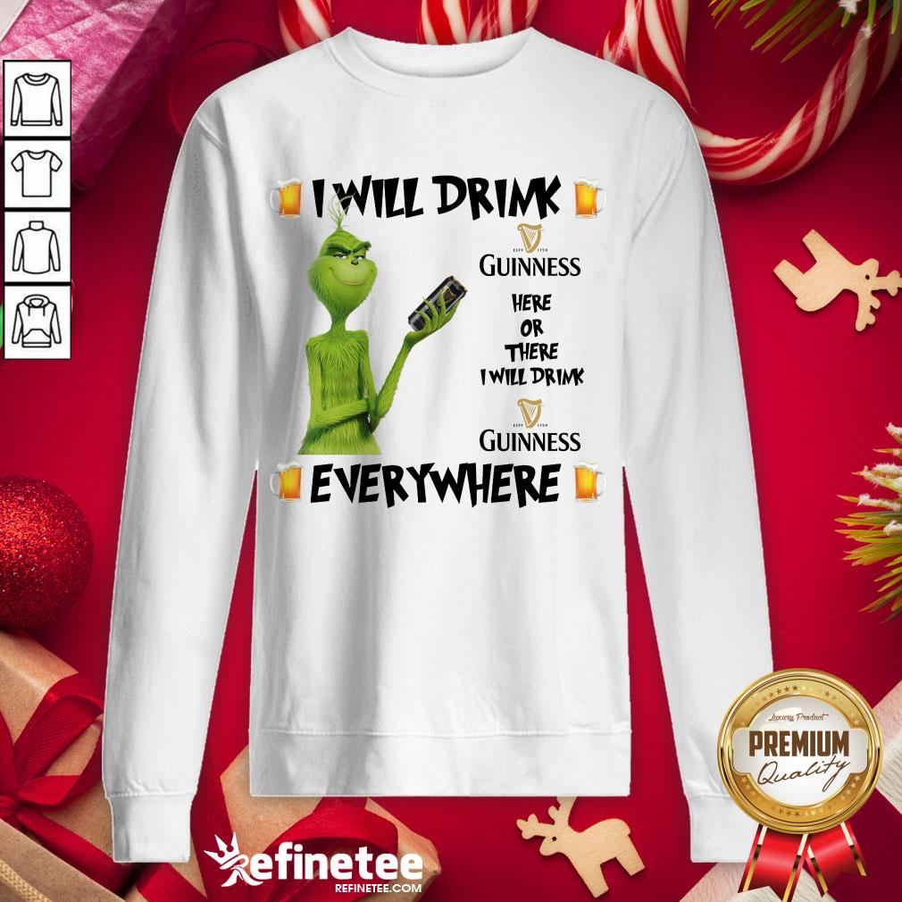 Top The Grinch I Will Drink Guinness Here And There Everywhere Christmas Sweater Shirt