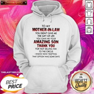 Top To My Mother In Law You Didn’t Give Me The Gift Of Life You Gave Me Your Amazing Son Thank You Shirt